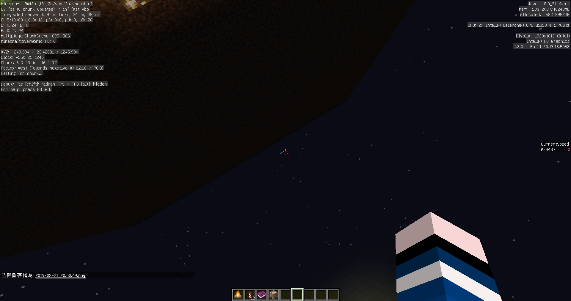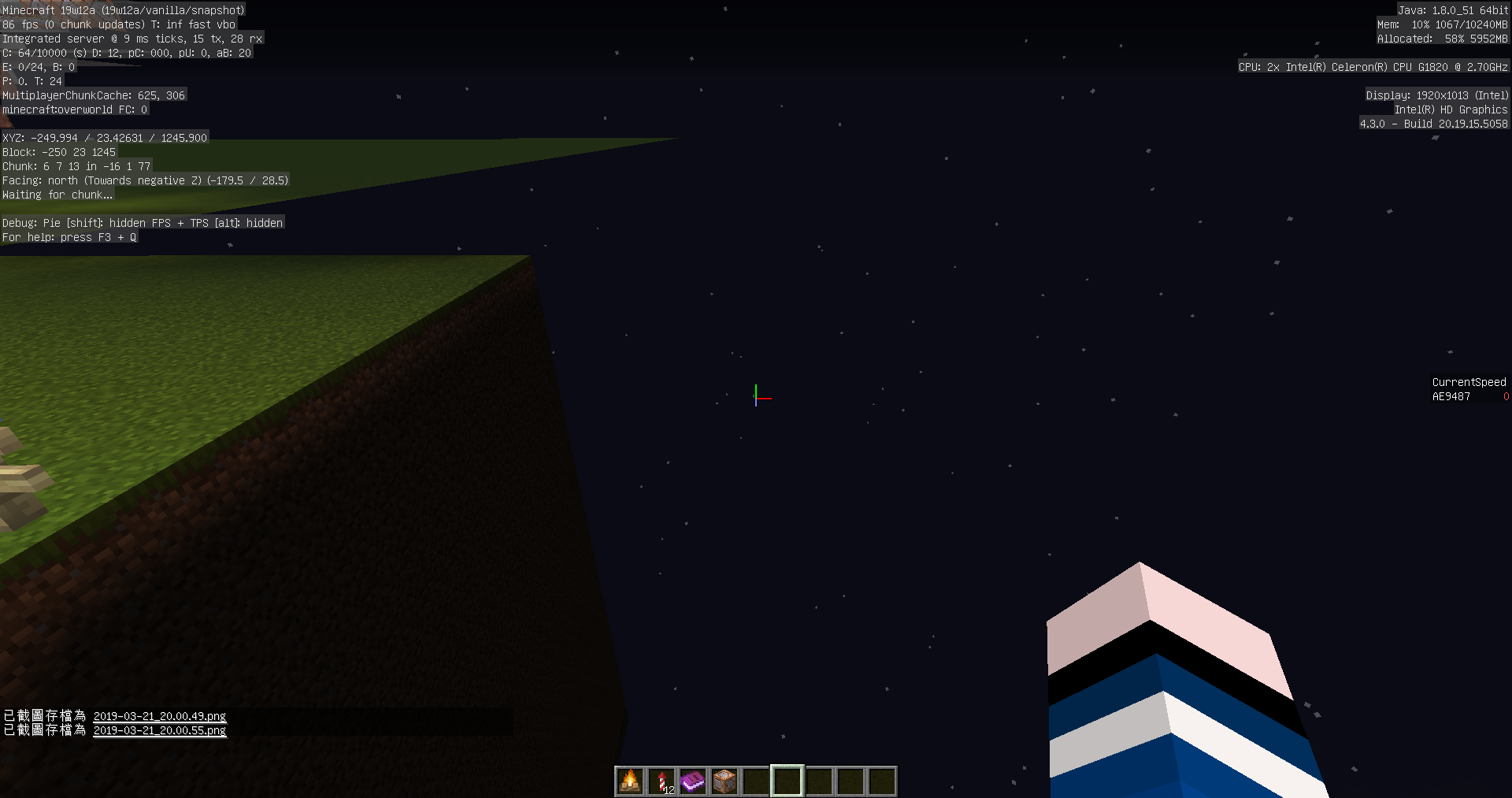 Some entities in the chunks seemed to load normally as I could see hostile and passive mobs floating in the air.