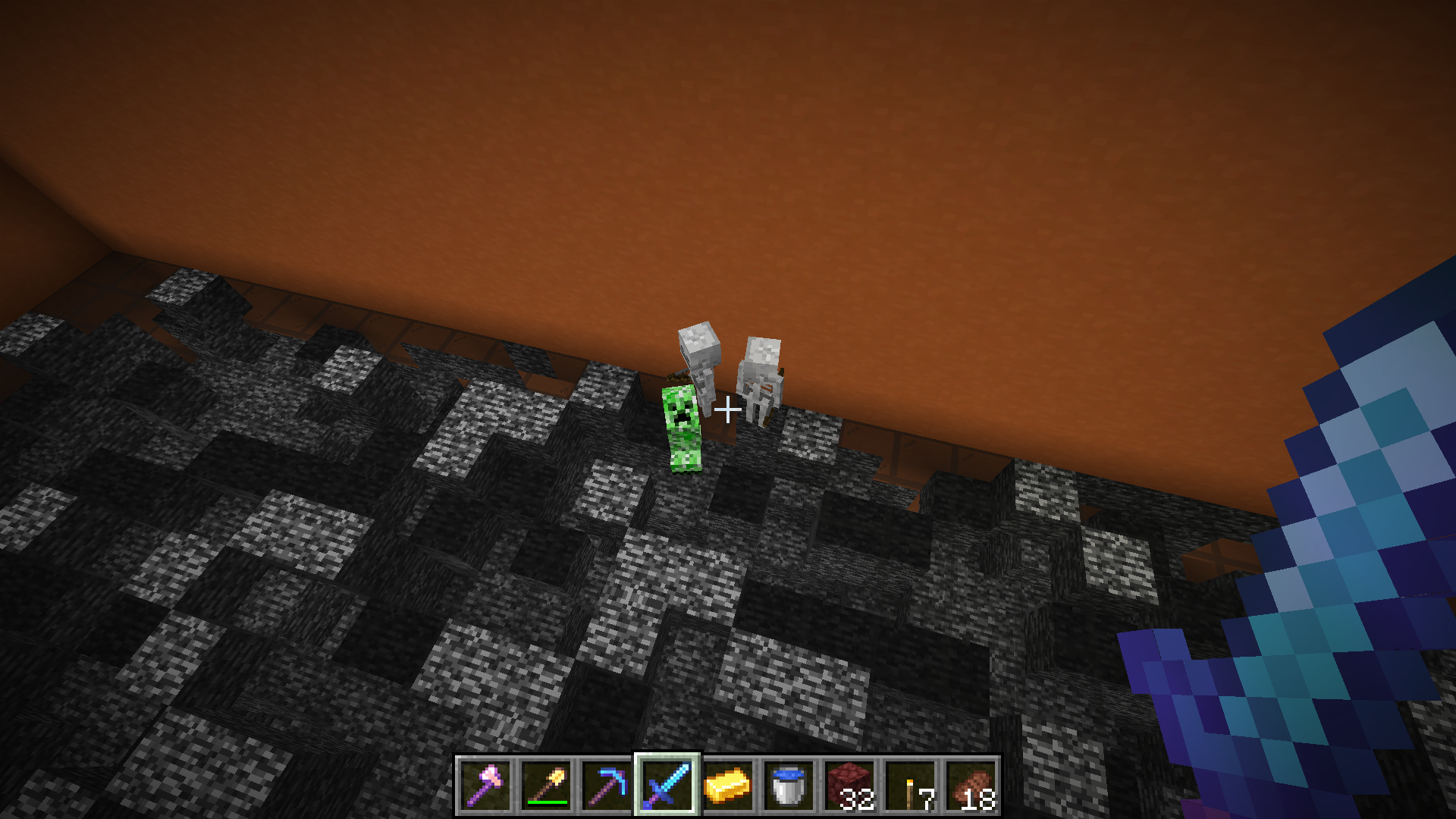 The creeper and skeletons spawned on glass where shown in the screen shot.