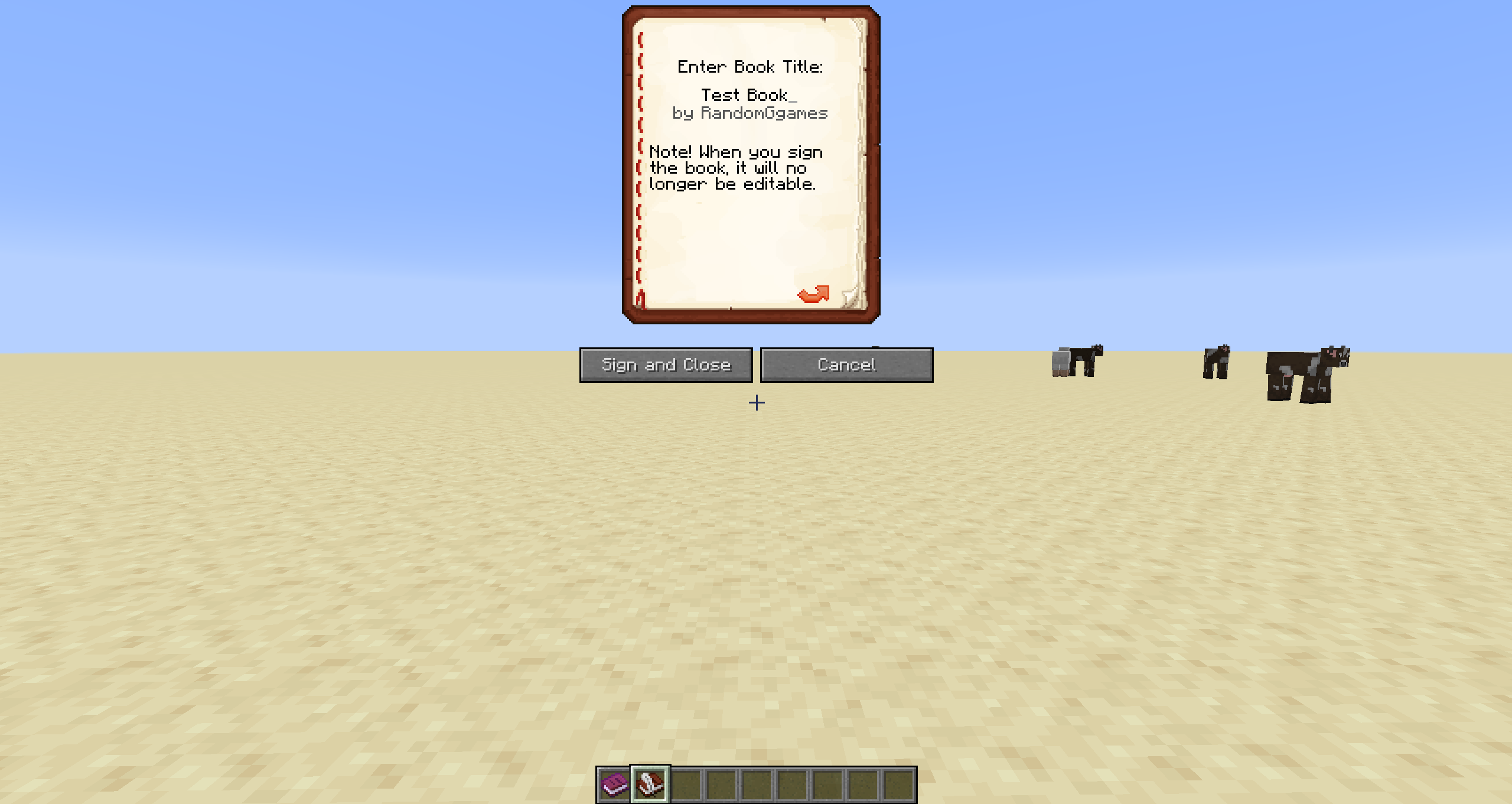 As the title suggests, when you click the sign book page in a book and quill, the next page arrow is visible.