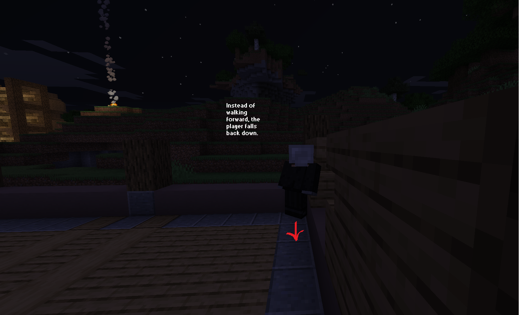 Whenever a player attempts to jump/fly onto a 1.5 block gap (1 full block and a slab of air) the player won't be allowed to pass through/rest on the ledge.