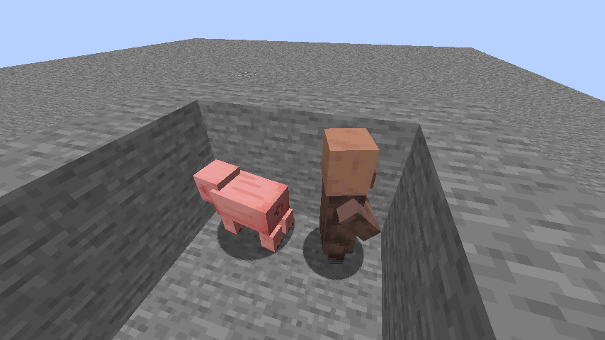 Notice that the Villager completely ignores looking at the Pig and just randomly looks around.