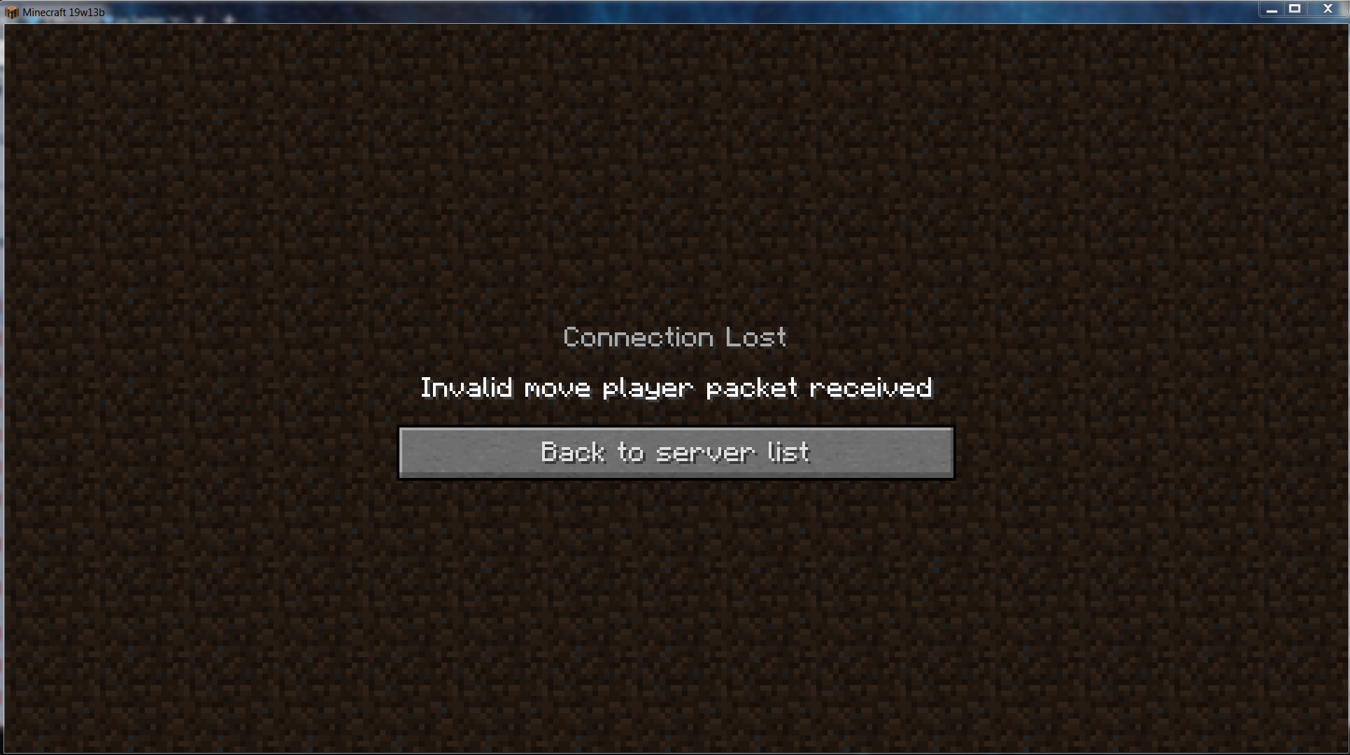 [Server thread/INFO]: Meri lost connection: Invalid move player packet received[Server thread/INFO]: Meri lost connection: Invalid move player packet receivedWorldsave is unplayable now, but I always make backups upon entering with a new MC version.