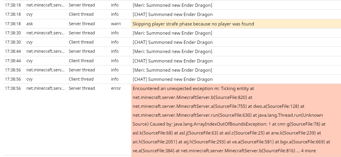 While checking the DragonPhases for bugpost MC-147152, I summoned 4 dragons, after that I crashed with "Ticking entity".