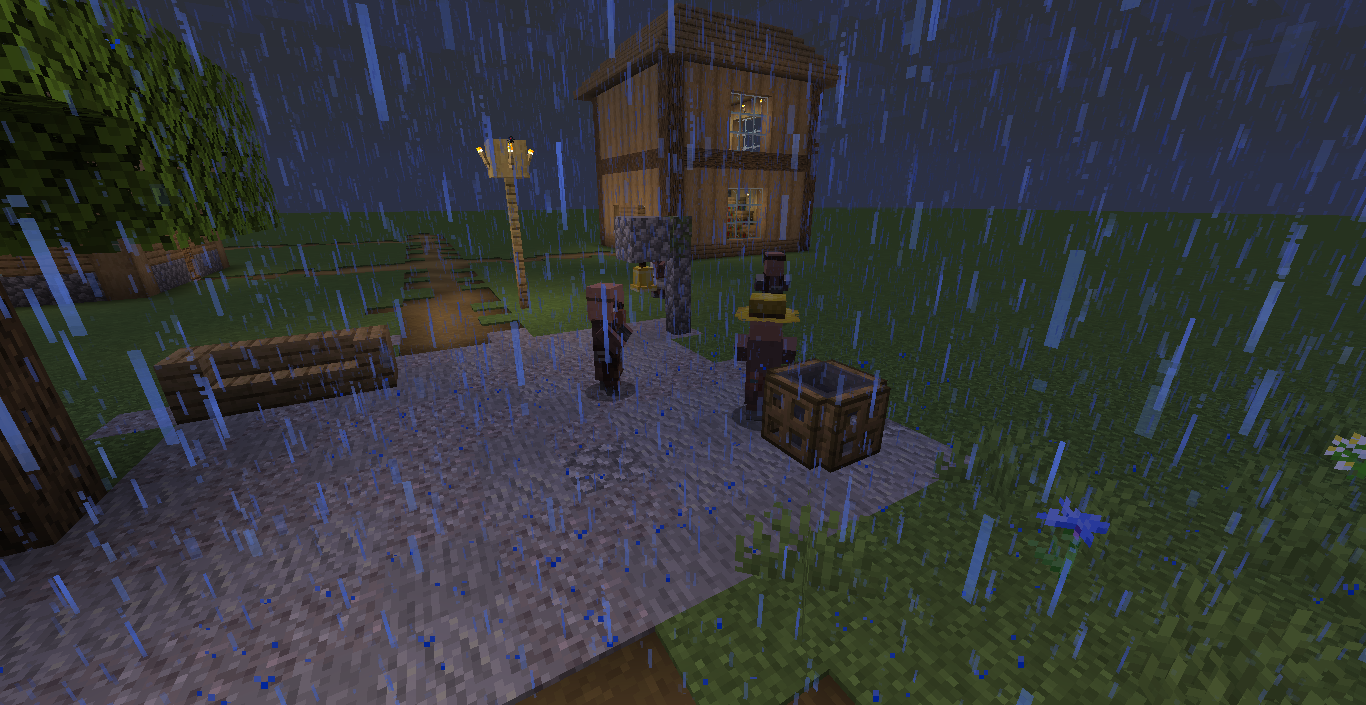 If I'm Not Mistaken I Remember In Older Versions Of Minecraft, Villagers Would Hide In Their Houses While A Storm Was Occurring. If It Was Removed For Some Reason, Take In Consideration About How Unrealistic It Is For Villagers To Be Gossiping In The Middle Of A Storm.