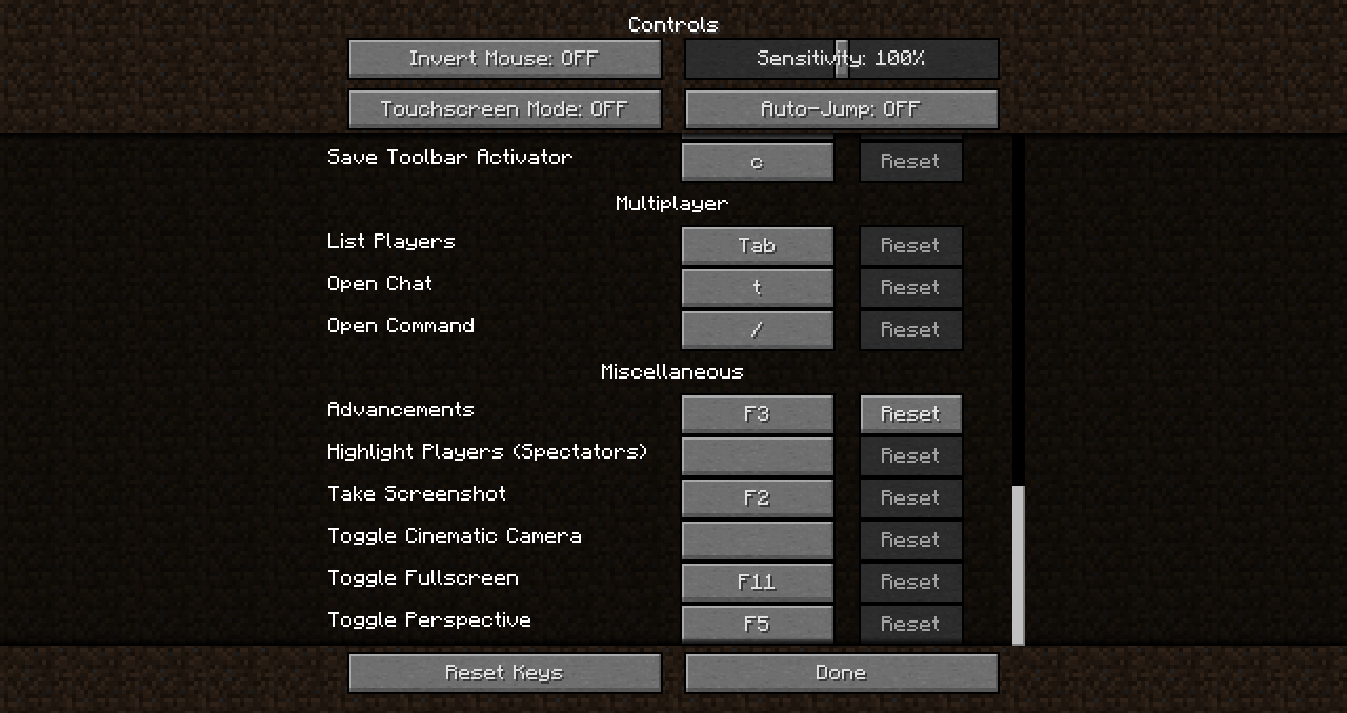 "It is also not possible to reassign the F3+letter key combo controls." Is that a bug or just a missing feature? The F3+letter controls don't necessarily have to be dependent on the player's control setting.