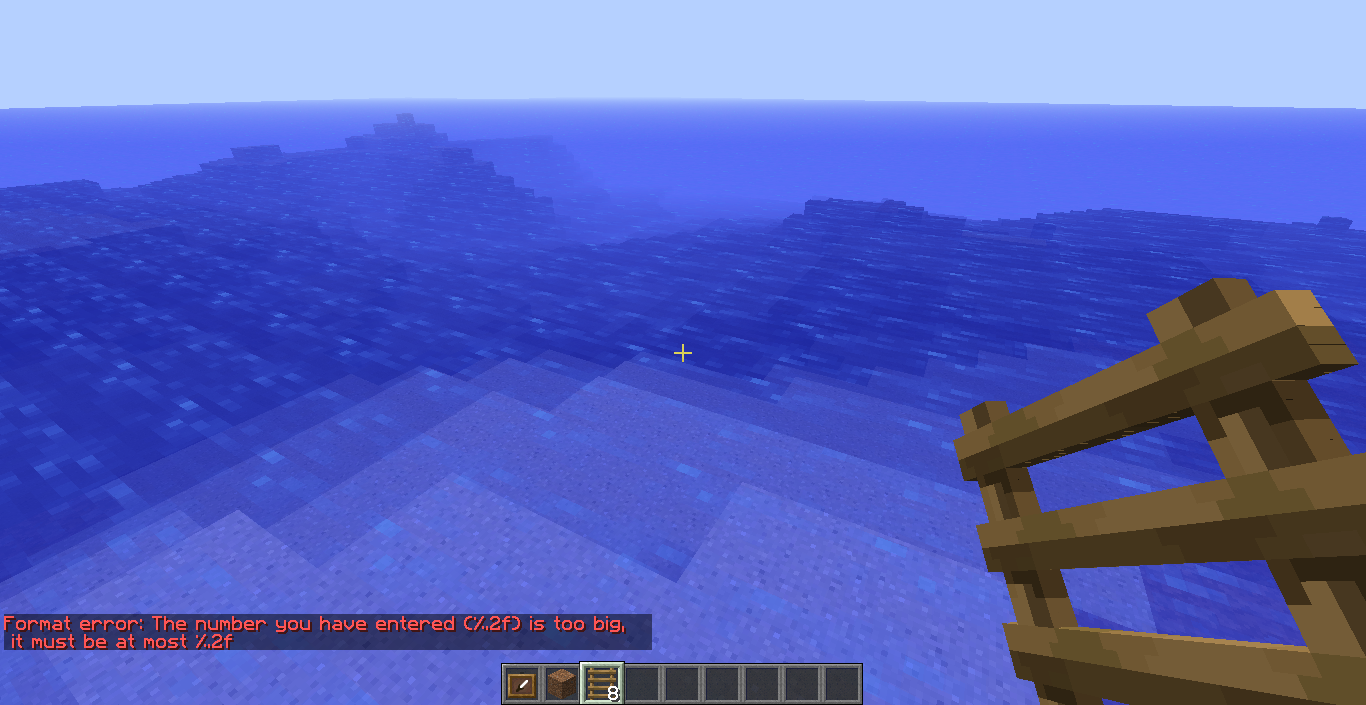 When attempting to teleport to coordinates that are too big for the /tp command, the error it gives displays the coordinates that were entered and the maximum coordinates as "%.2f".