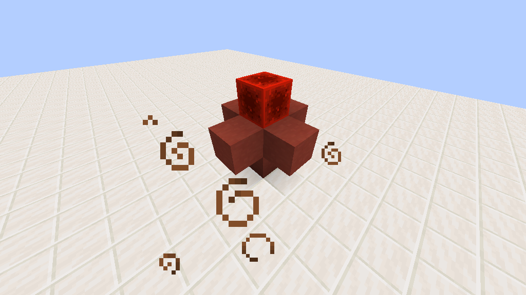 The pistons/red terracotta represent the points where the redstone block transmits the signal improperly