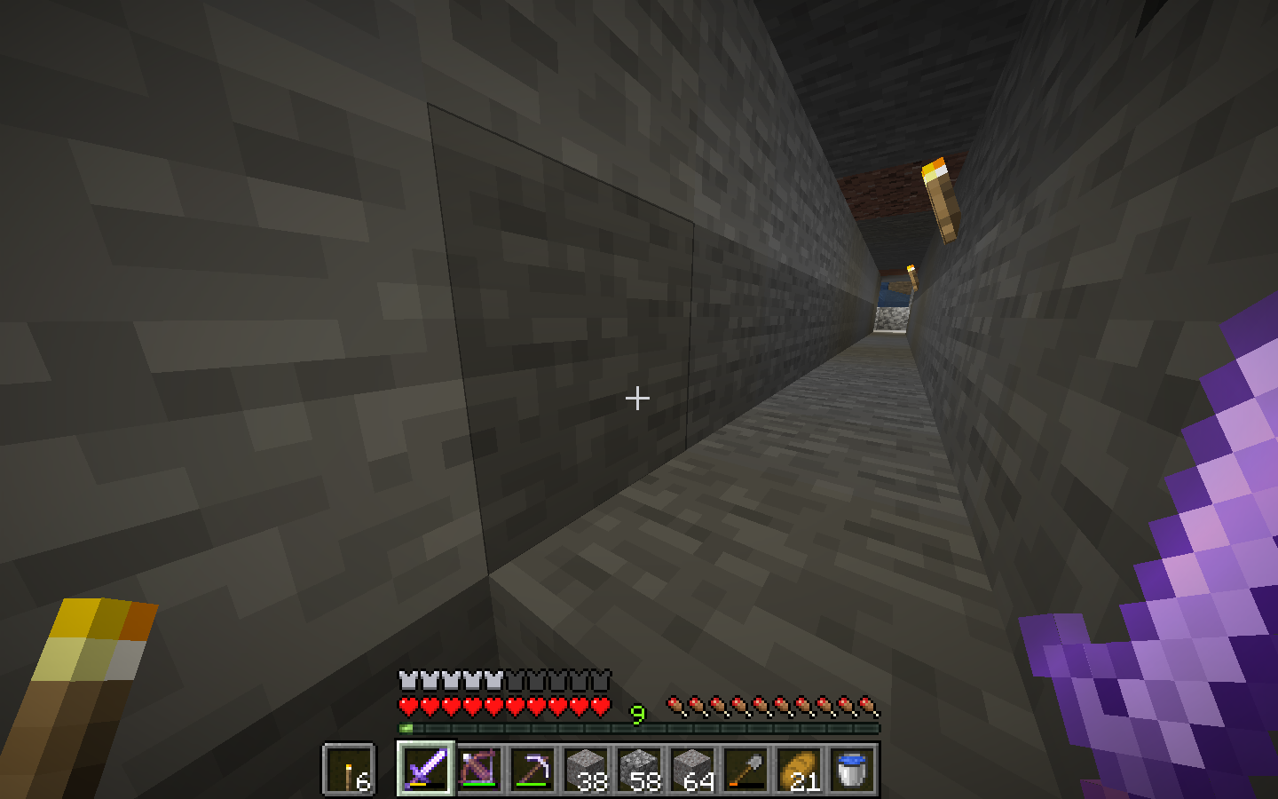 When I was lighting up my cave system, I noticed that the light the torches gave off in my 2x1 hallway weren't reaching the lower line of blocks, and that the transition wasn't all that smooth.