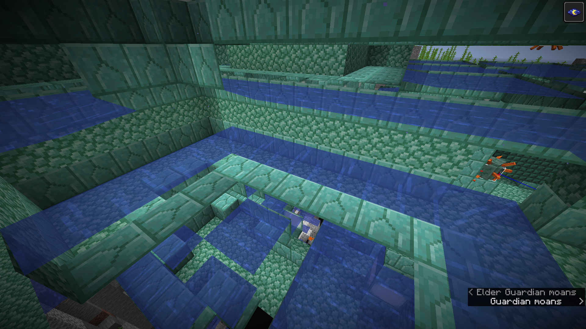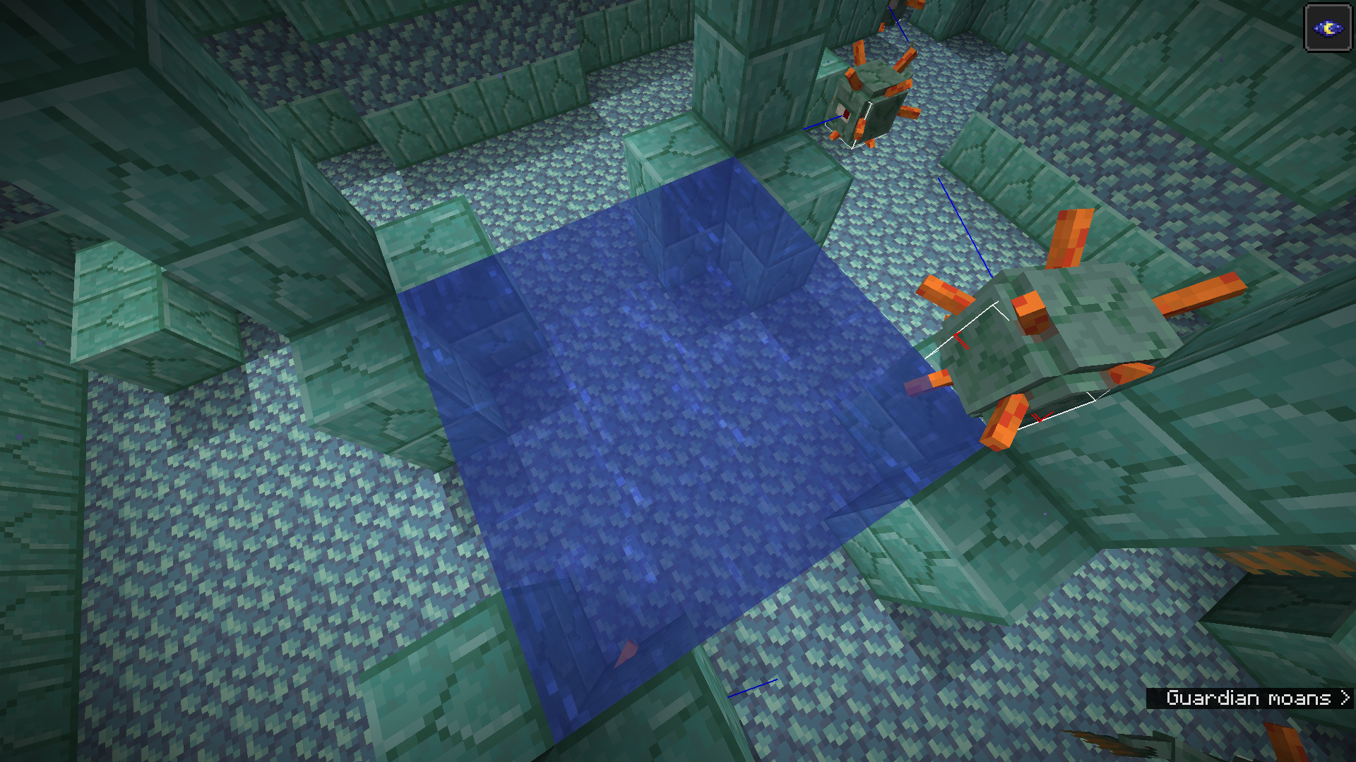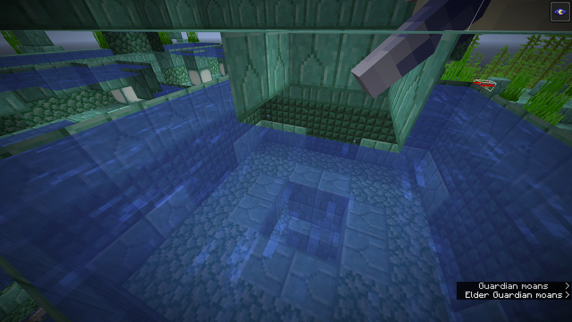 On world generation, ocean monuments generate flowing water in some areas instead of being full of source blocks