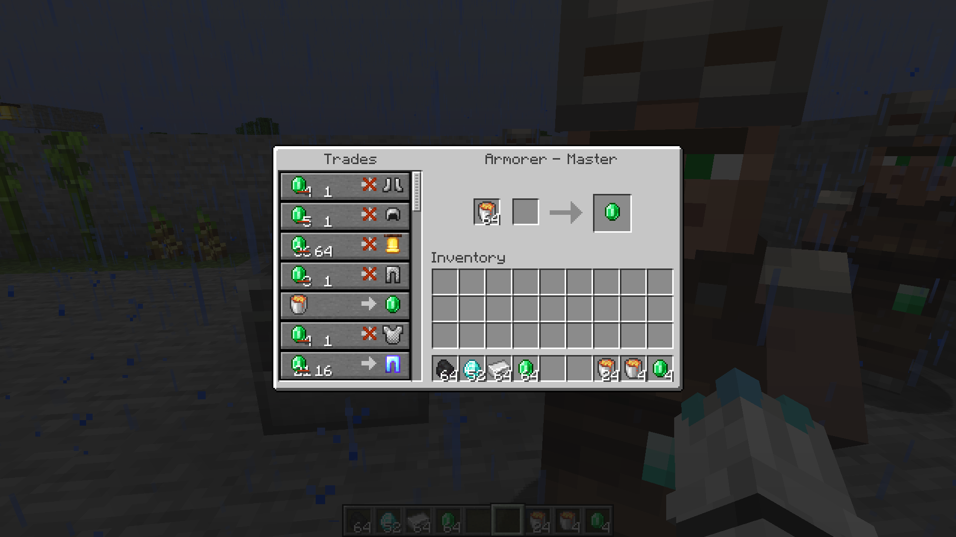 If you have more than 1 bucket of any type (like lava) in your inventory and shift click on villager trade that trades 1 bucket for and emerald, then all the buckets in your inventory stack.
