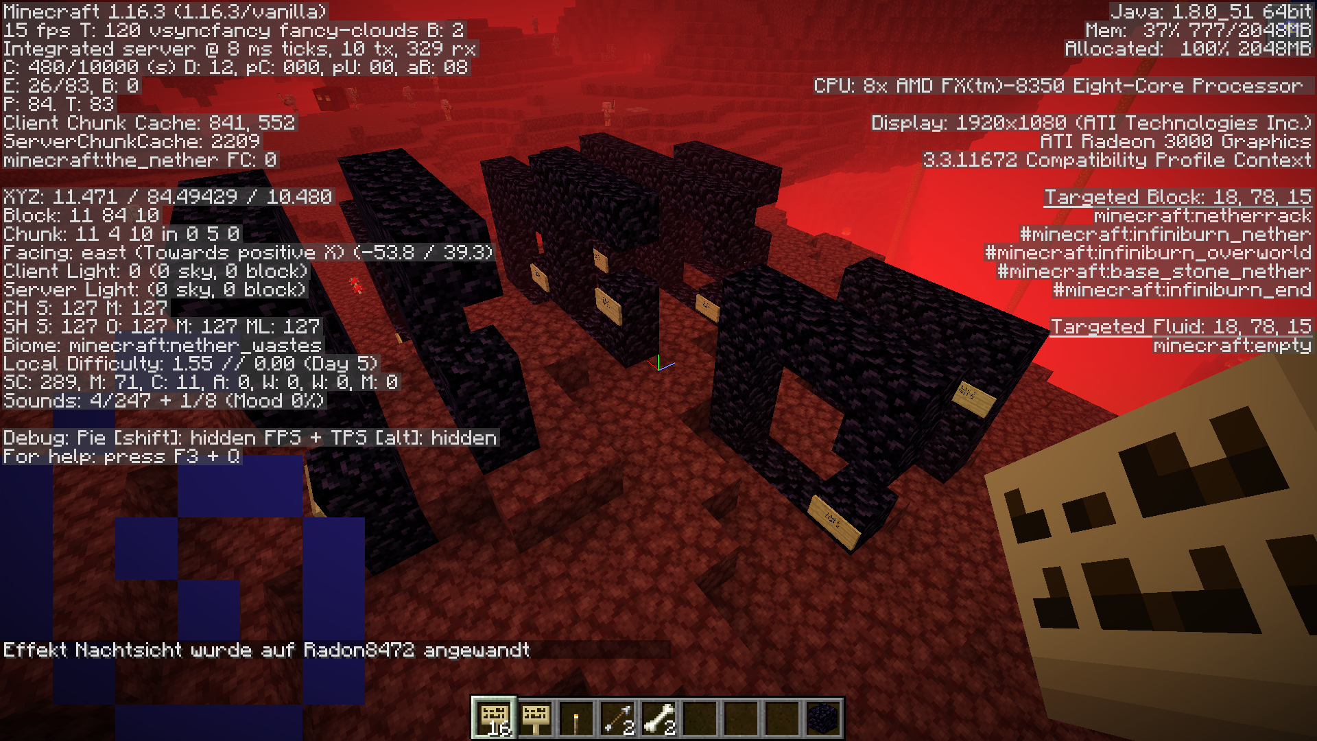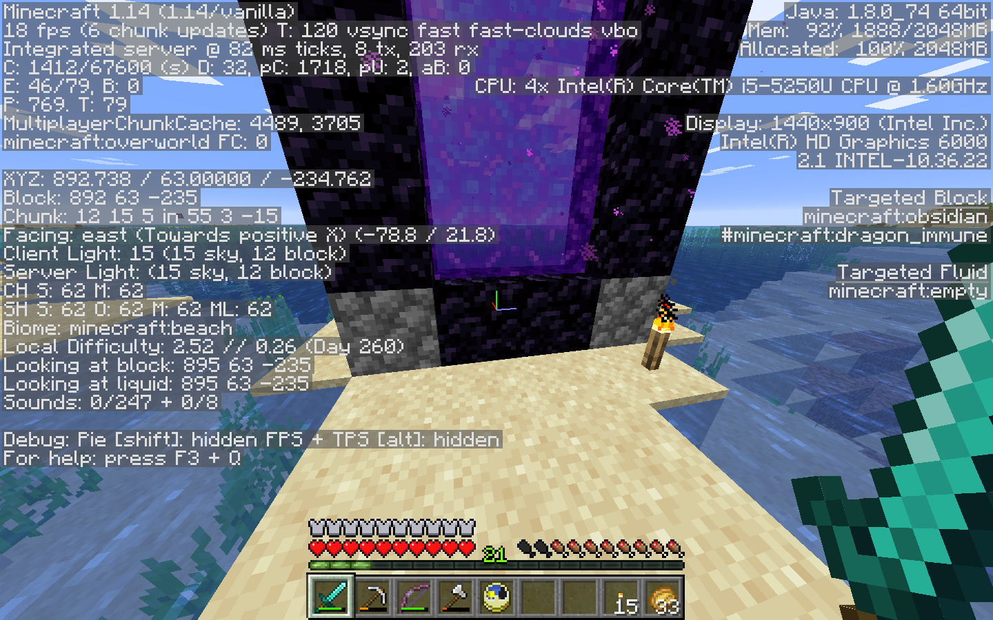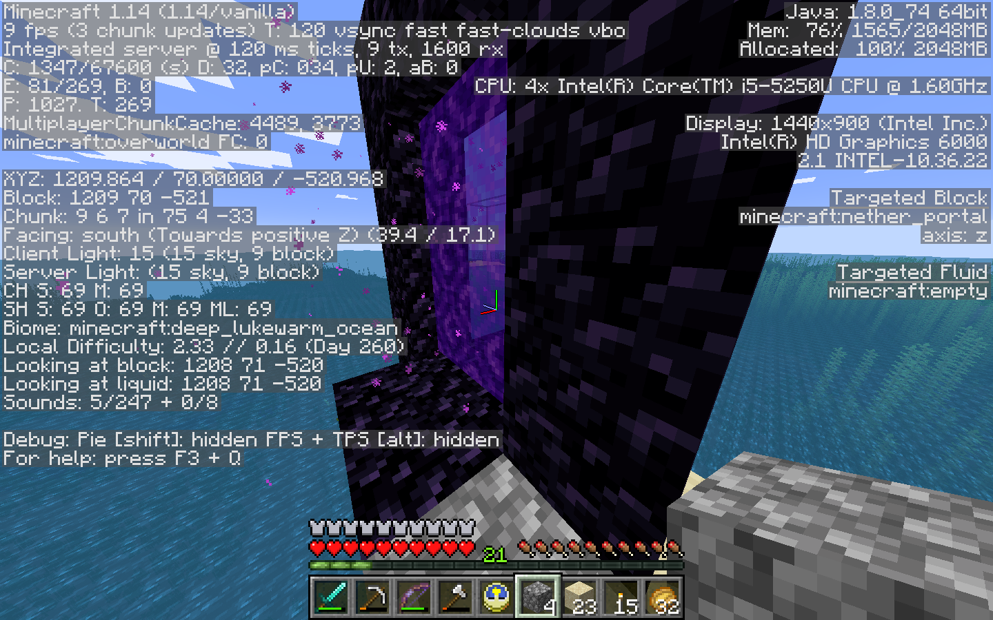 The portal I made: 85 / 80 / 193 Overworld, Nether entrance: -4, 37, 9