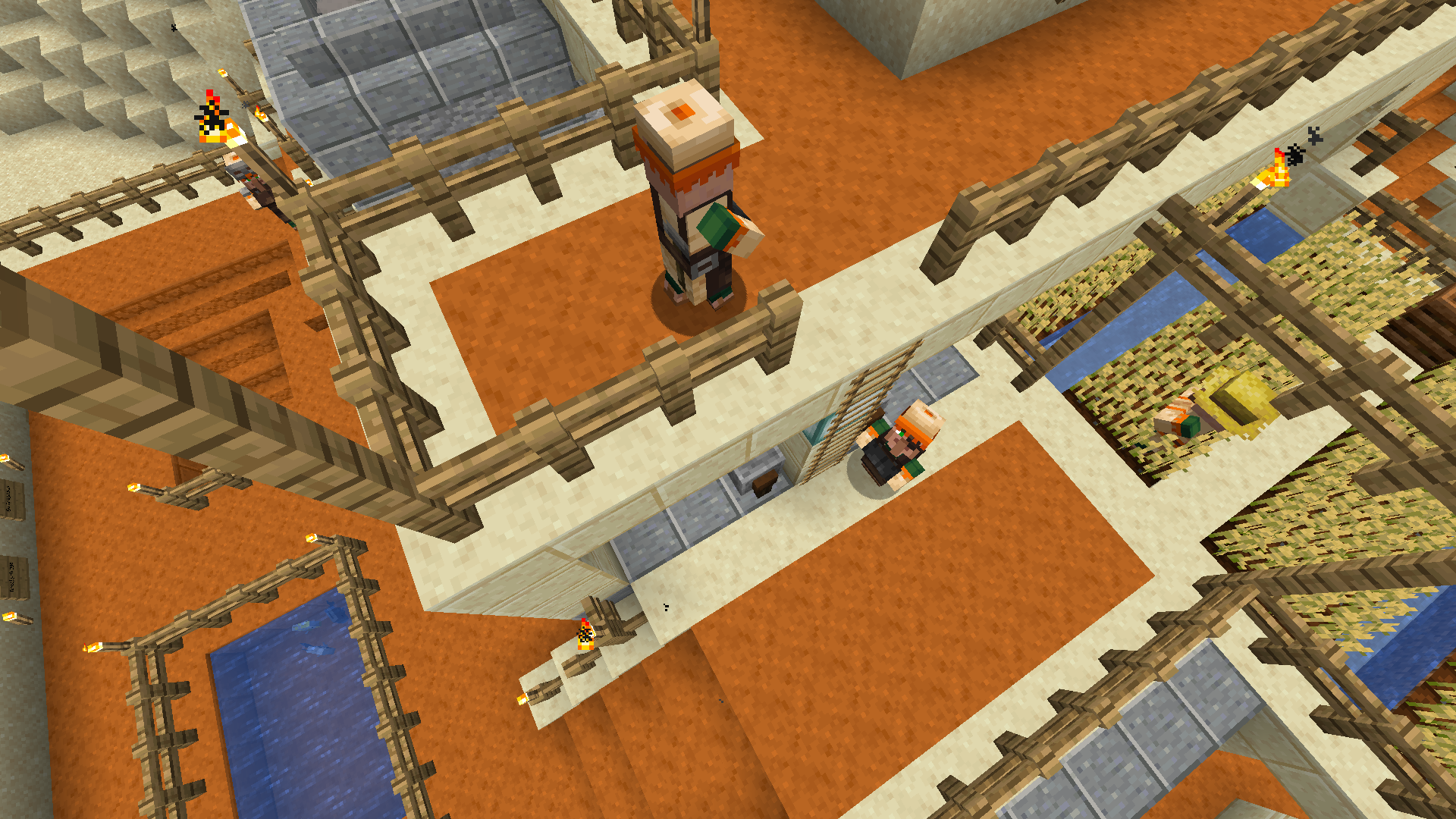 I think the villager/-s overhaul is a great success. And whilst most things regarding professions and the new schedules for villagers work just fine, I noticed some annoying pathfinding issues which prevent the villagers from reaching their workspace or makes it impossible for them to roam without bumping into something. Especially ladders and fences are their weak points. They act like they are not there. In the screenshots 2019-04-26_17.22.17 - 2019-04-26_17.22.49 one can see a villager who tries to get around the corner yet fails because he is not taking the fence into account. After some jumping, he eventually made it. Just to bump into the next fenced corner. The biggest problem is, however, that villagers are ignoring ladders. They certainly are able to use them. Still, they are not making use of them in their pathfinding. In 2019-04-26_17.00.57, 2019-04-26_17.01.18, 2019-04-26_17.54.48 - 2019-04-26_17.54.51 villagers who are trapped on a roof can be seen. They climbed up the ladder and could not make it back down without me. 2019-04-26_17.04.45 - 2019-04-26_17.05.02 show two fishers who cannot escape their own attic. In the remaining pictures are some villagers who desperately try to reach their workplace. Interestingly, they even decided to not use the stairs in the back. Since the won't use ladders and don't take too long a detour they never get to their workstation.