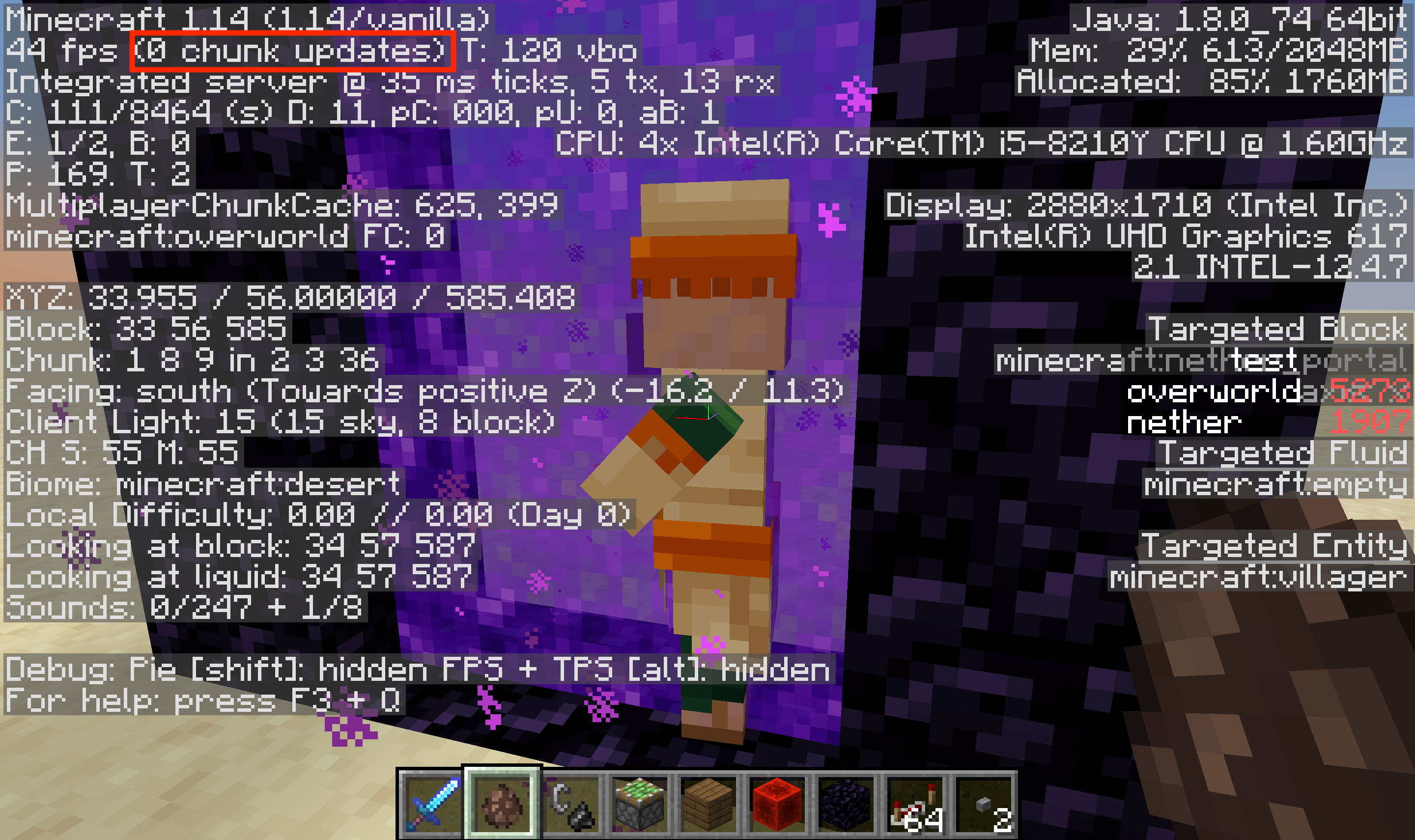 I placed the villager in the portal, attempted to spawn more villagers with spawn eggs (Nothing happens), and attempt to power a piston with a redstone block (No activation). Upon the villager going into the nether, all the other villagers I spawned appear at once, and the piston extends