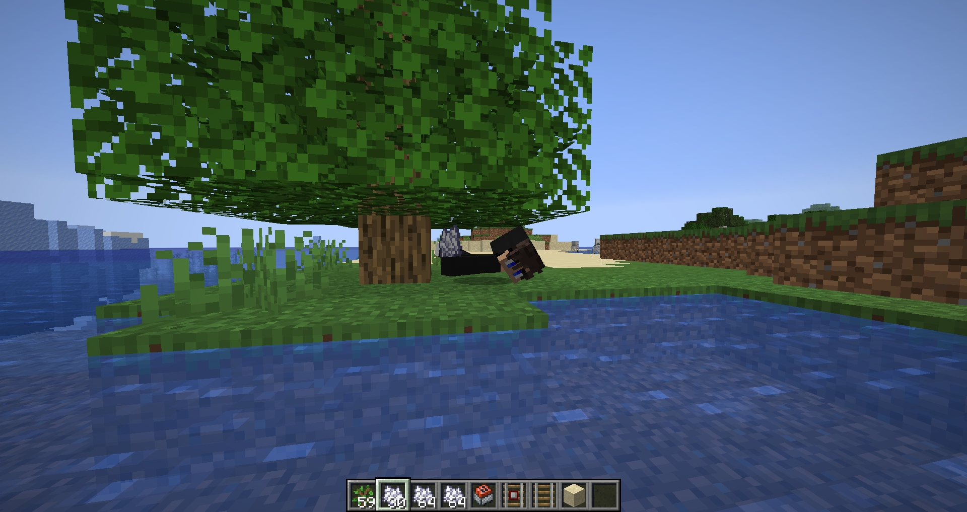 When you grow a tree, or are in the area next to one when it grows and the tree is a small five block high tree the player will be forced into a swimming position. Whereas in other versions you would simply get stuck in the leaf block.