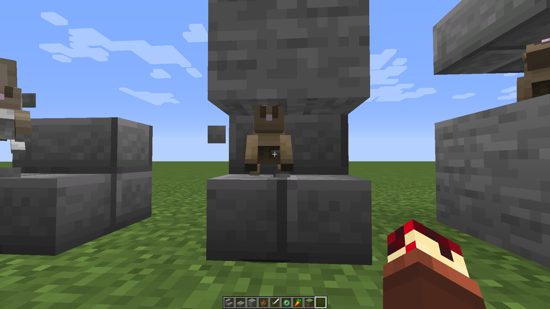 Rabbits get stuck on stairs, under downwards rotated stairs and under slabs, which are on the top half of the block. While stuck they still try to jump around but they can look at the player.