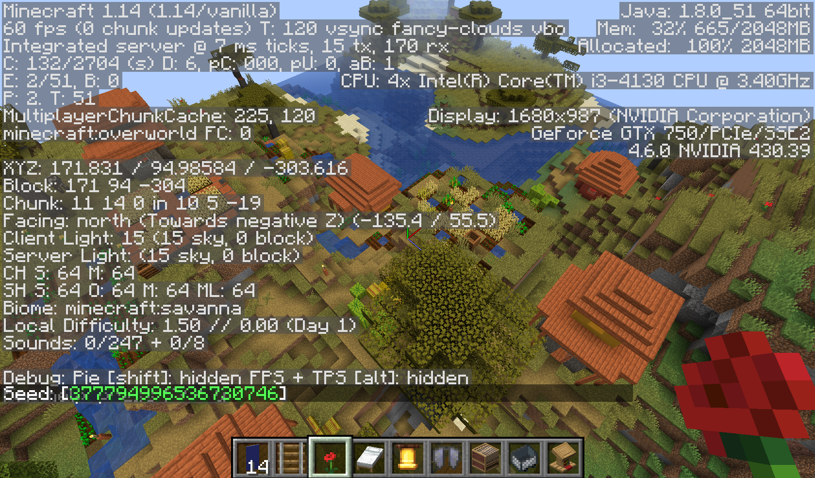 Seed/coordinates on screen