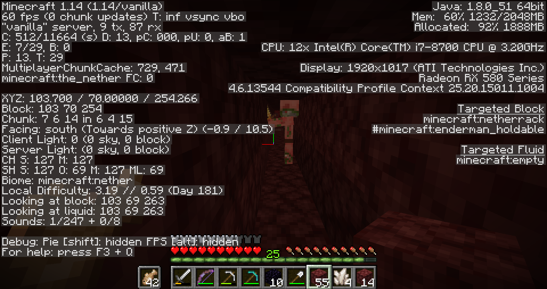 included screenshots from the nether shows the x-coordinate rapidly increasing while moving towards a still pigman, then after passing him, the x-coordinate stops even after moving away from the pigman.