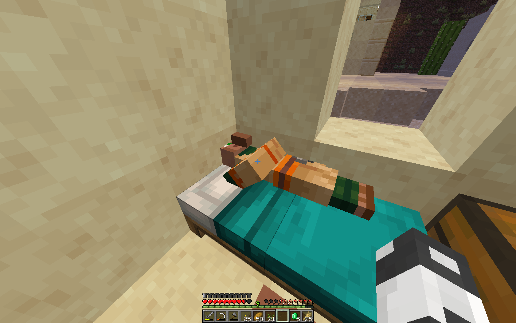 zniszczyłem łóżko na którym leżał osadnik i gdy znowu je postawiłem to osadnik przeniknął w ścianę/ When i breaked the bed under a villager and placed it back down villager clipped into wall while laying on bed