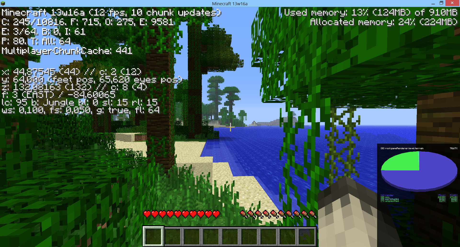 I checked my nVidia card settings and I am not playing on Integrated settings. Whilst playing in a jungle on all three settings, I get about the same FPS each time. However, the root.gameRenderer.level.terrain started at about 62% and rose up slowly to 65%. Settings were on fast, no smooth lighting, with vSync and Advanced OpenGL on.