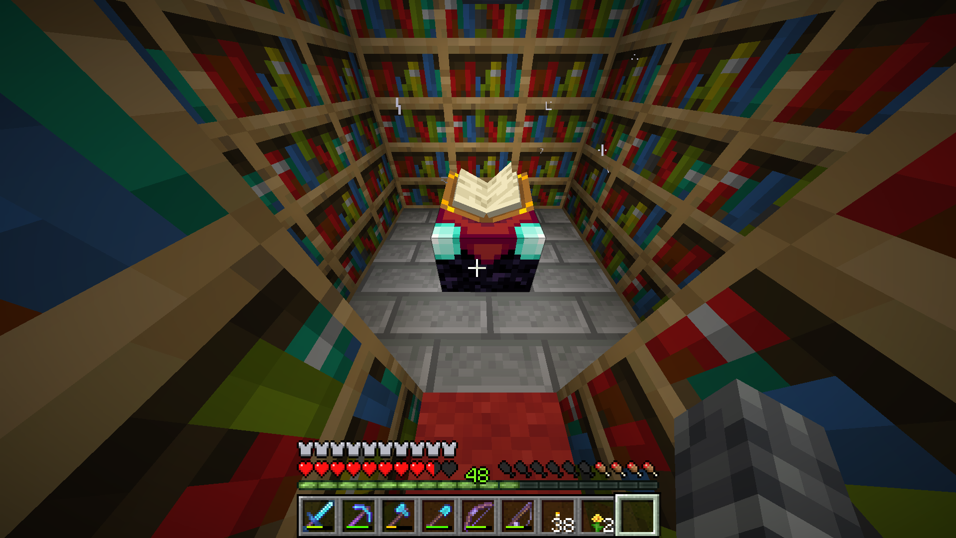 What the title says. Placing carpets on the floors of enchanting rooms (if you look at the provided screenshot, the carpets would be where the Stone Bricks are) blocks bookcases and only lets enchantments go up to level 3.