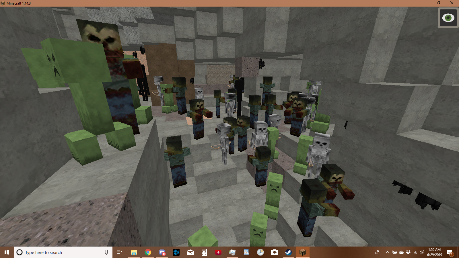 12 skeletons, 3 creepers, 2 endermen and several zombies