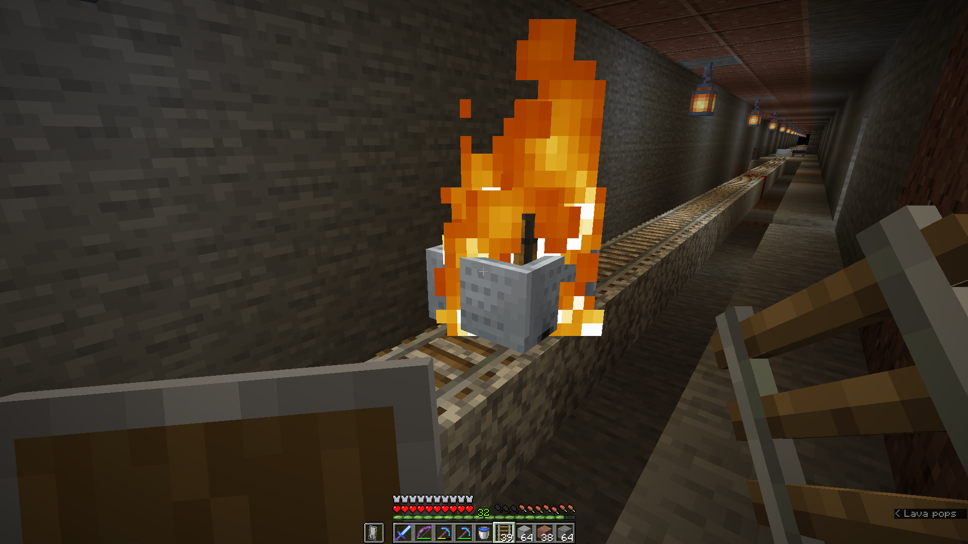 I got this miecart w/ chest on fire by clicking to open it as I ran up to it, but I had the bow in hand and was just barely too far away to open it when I clicked.