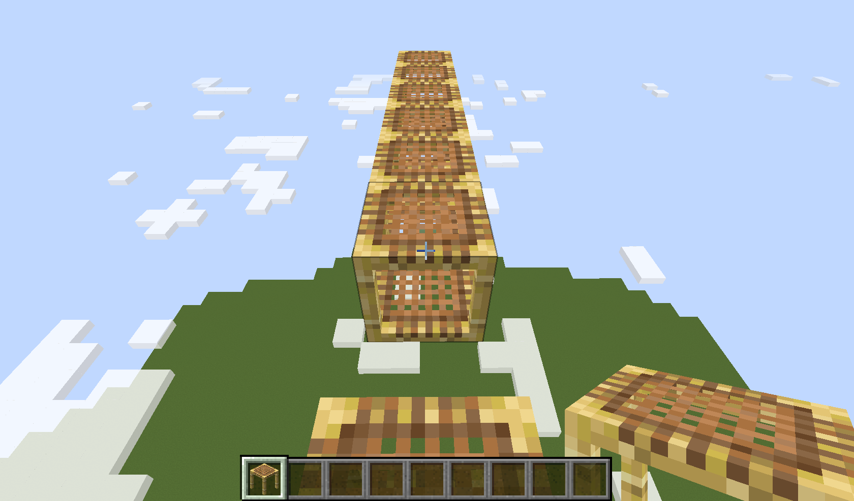Extend the scaffolding to the side by clicking on the top of the stack.