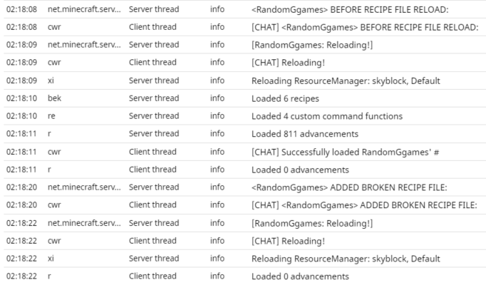 When a recipe file is coded incorrectly and added to a data pack, reloading the pack/world does not show any errors in logs, keeps the data pack loaded, but disables everything in it.