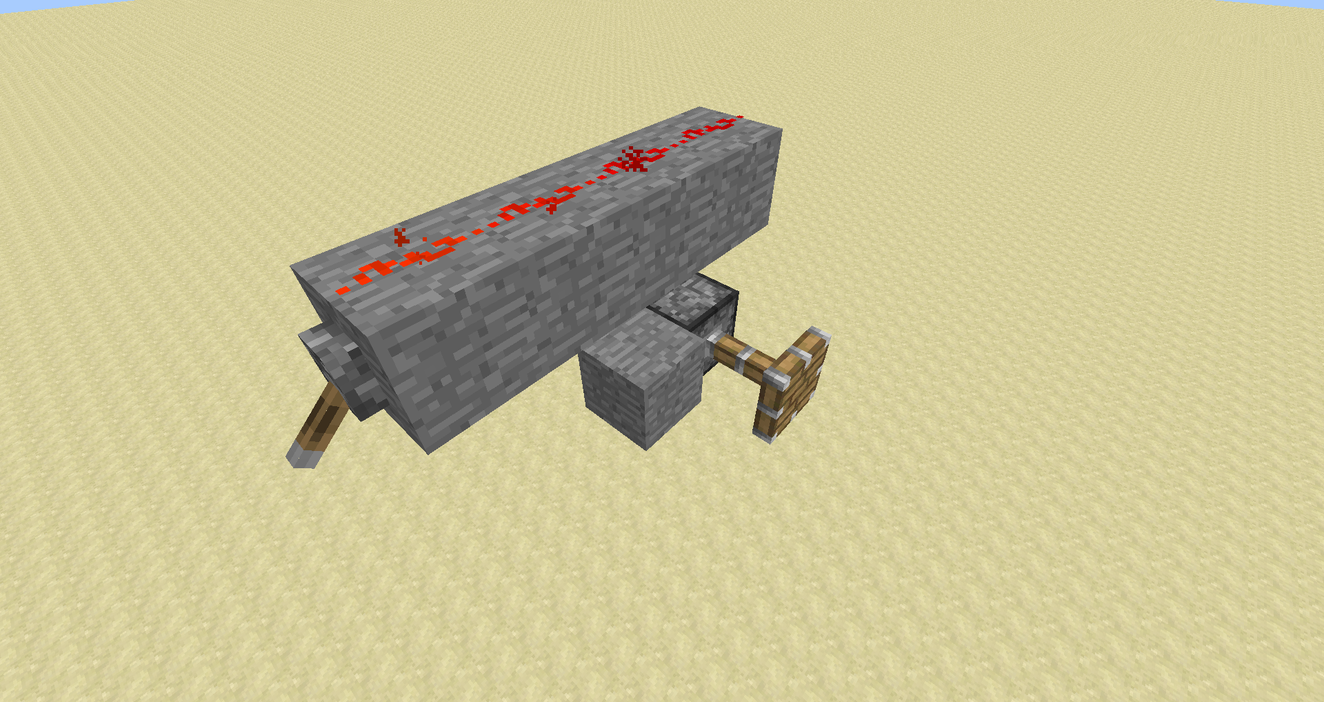 I built a line of Redstone on stoneblocks over a piston.
