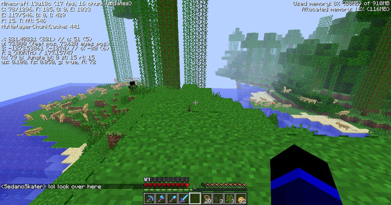 In the jungle on a multiplayer vanilla server that I own, there is an insane amount of ocelots that have been spawning since I updated the server to update 13w18c. Sometimes the amount will be in the upwards of anywhere from 400-700 entities that can only be targeted to ocelots.
