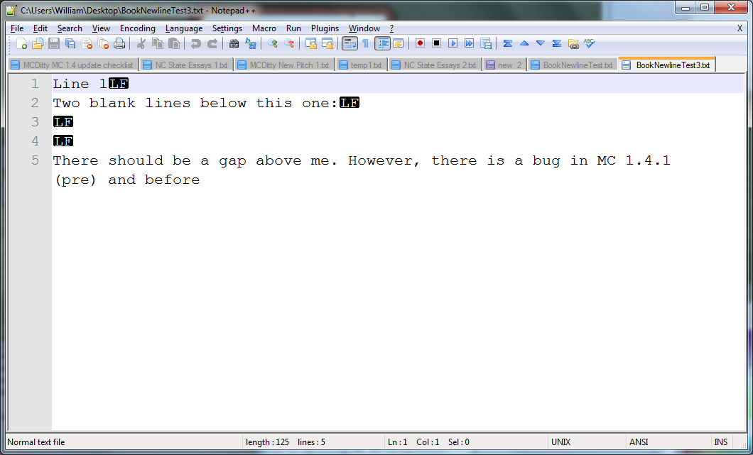 1: A page is written in Notepad++, showing newline characters.