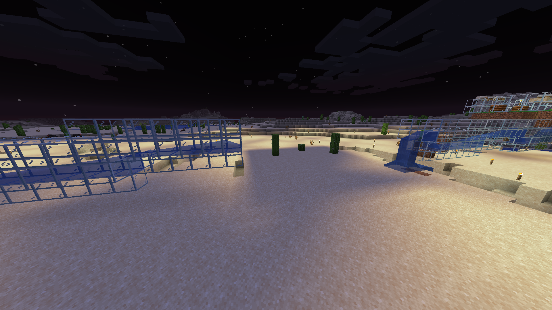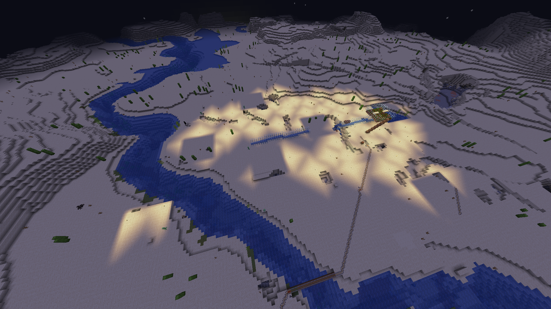 I started up my computer and joined my Minecraft world and then I noticed that a chunk was missing from my water transportation system. The area was unlit even though there was torches right next to it and the water wasn't flowing (I tried to update the water on the left). It looked that the chunk had been reverted to it's original state. Then I looked around and noticed that there were multiple unlit chunks nearby.
