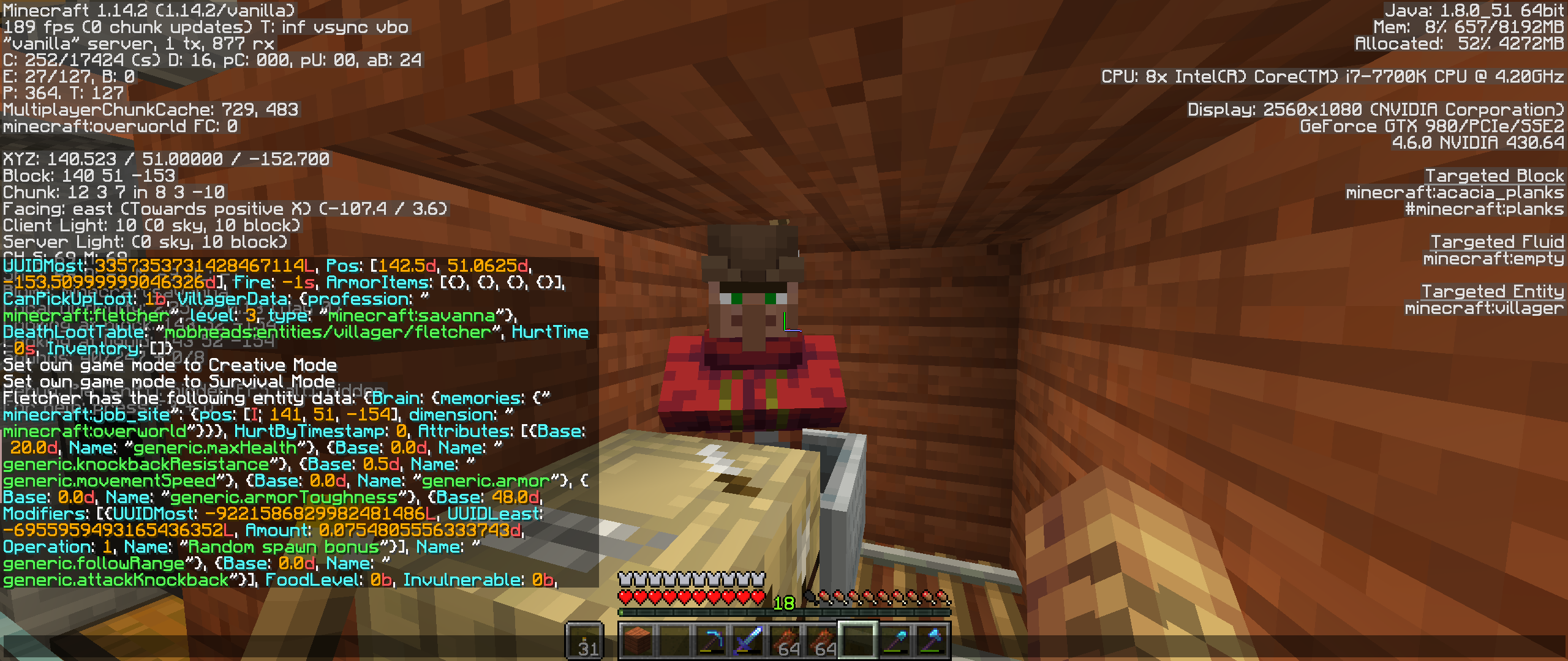 Spawn in a new villager right next to work station. Villager acquires workstations. Inspect villager data using data get entity command. Villager confirmed to have memory of workstation. Trade with the villager until locked out. Run day night cycle. Re-inspect villager and now memory is gone. Work station has not been touched or moved. This is a fletcher and is one of the villager that has been affected the most. It seems to randomly happen to some of the other villagers. I have found no way of resetting the fletcher other than killing him!
