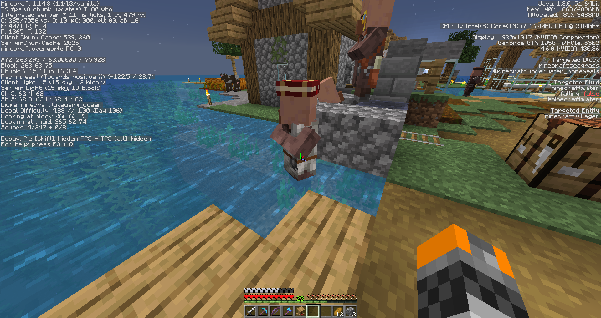 In version 1.14.3, i'm seing that villagers get "stuck" in sea plants, like kelp and sea grass. If nothing pushes them out of the plant, they will stay in the same position being only able to spin