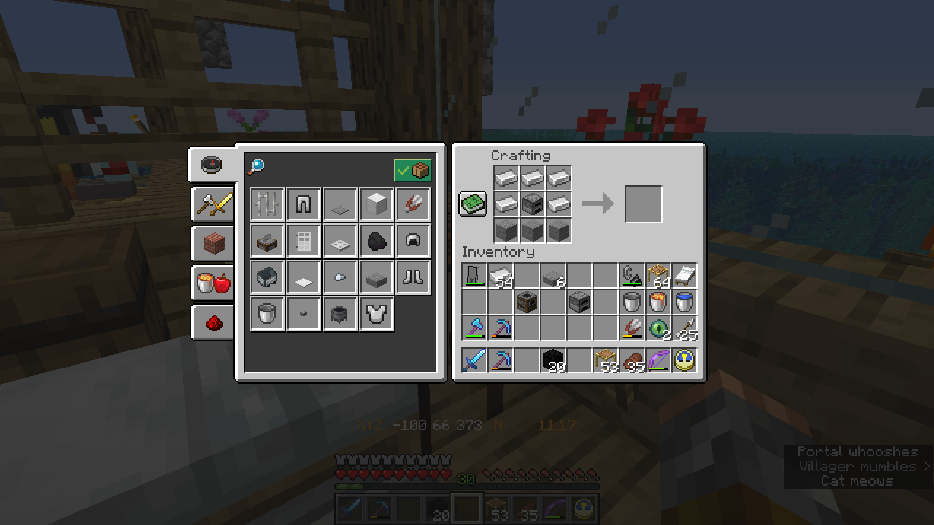 1. Placed 3 stone, 5 iron ingots, and 1 furnace into crafting table