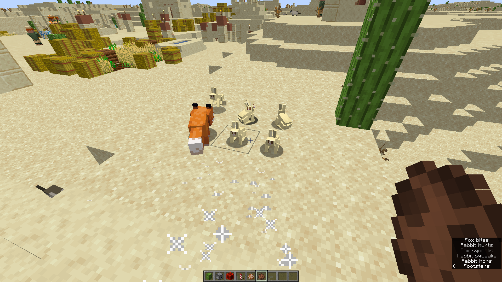 When rabbits are hunted down by foxes or cats, they do not display a fleeing behaviour which causes them to be easily killed. They only display a panicking behaviour when hit by the fox/rabbit which happens to the rabbit when taking any sort of damage. This contradicts the behaviour that rabbits have with other hostile mobs, untamed wolves and players (in survival mode) where they flee.