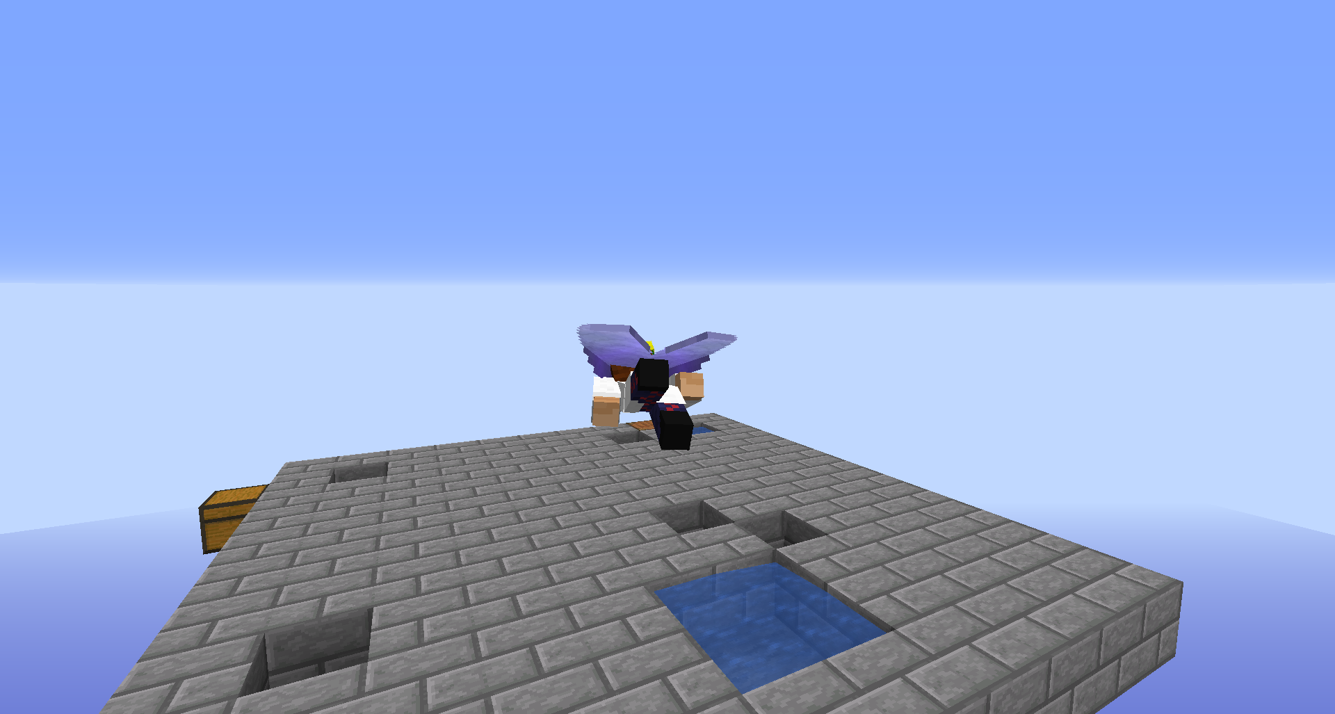 Hold the jump key to swim up out of the water onto the adjacent blocks. At this point, you should notice that, if you jump, you get a sort of slow-falling effect.