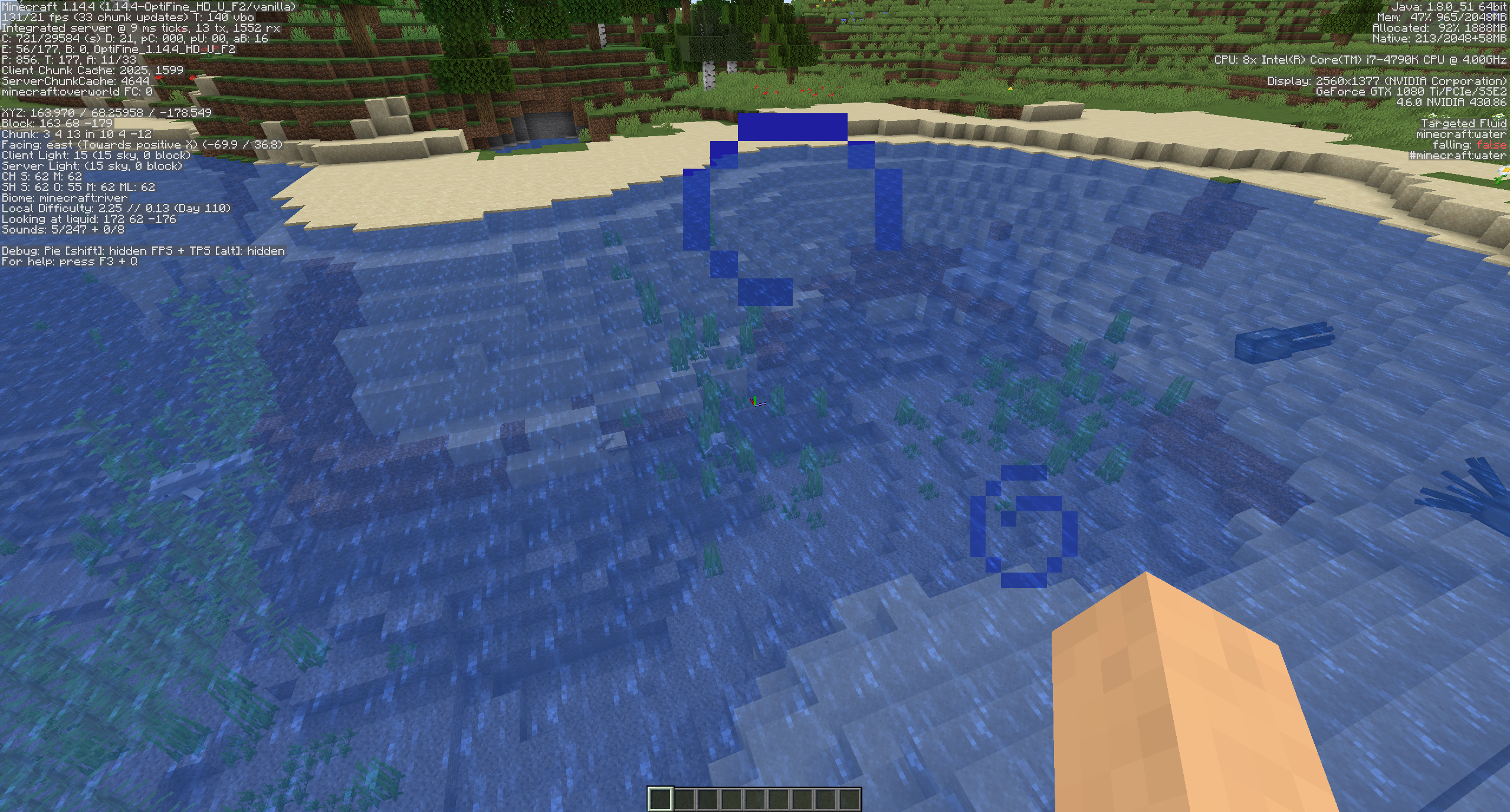 Update Again: Just worked my way to your coordinates you gave in the screenshot; counted 18 medium-large bodies of water and two massive oceans (spanning at least 1,000 blocks across) all while in 3rd person, scouring throughout the travel; still zero squids, dolphins, fish.