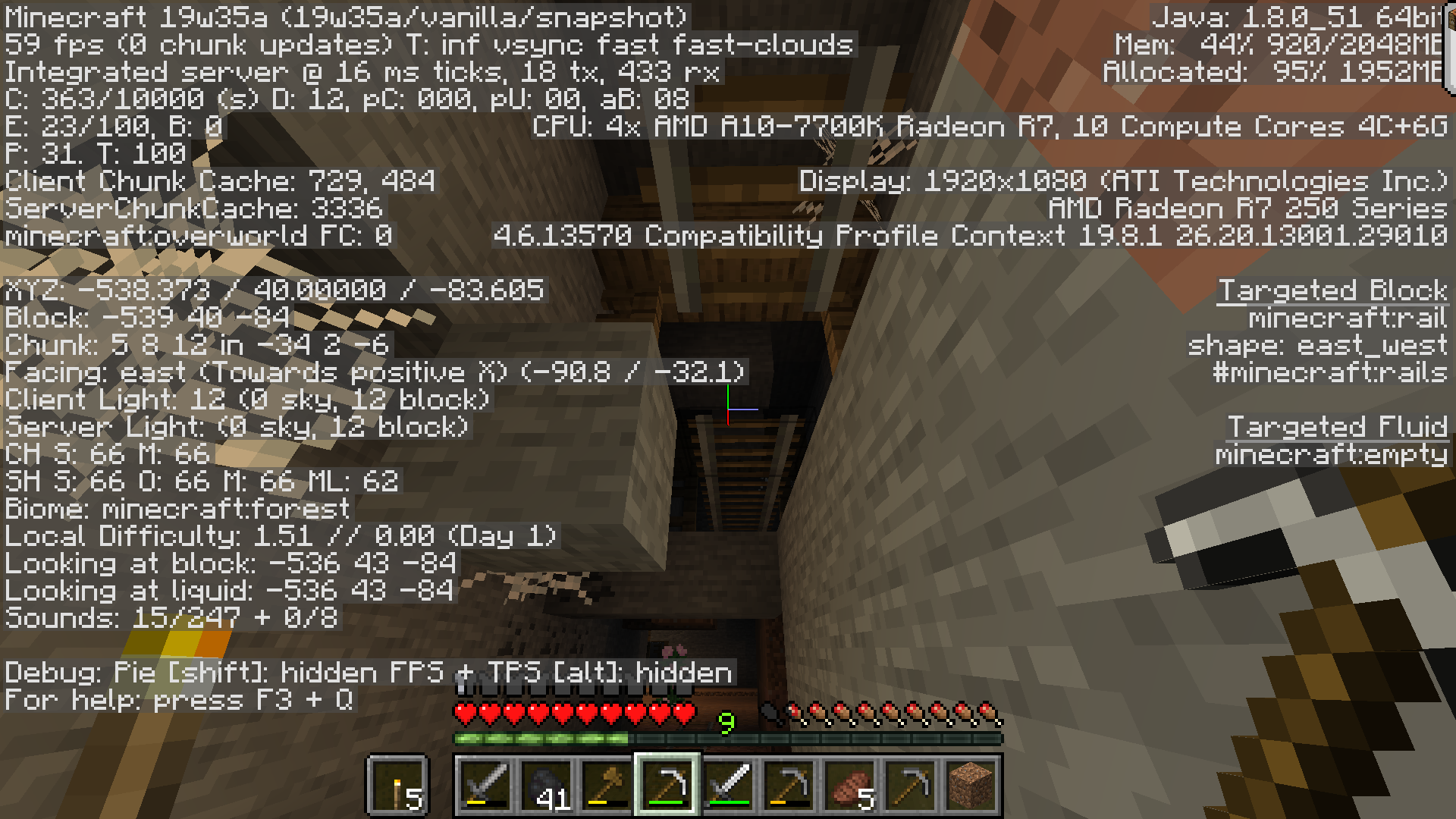 Sometimes in abandoned mineshaft minecart rail load without any block below them causing them to float. I'm pretty sure it's a bug caused by the lasted snapshot. I've attached some images below showing this bug.