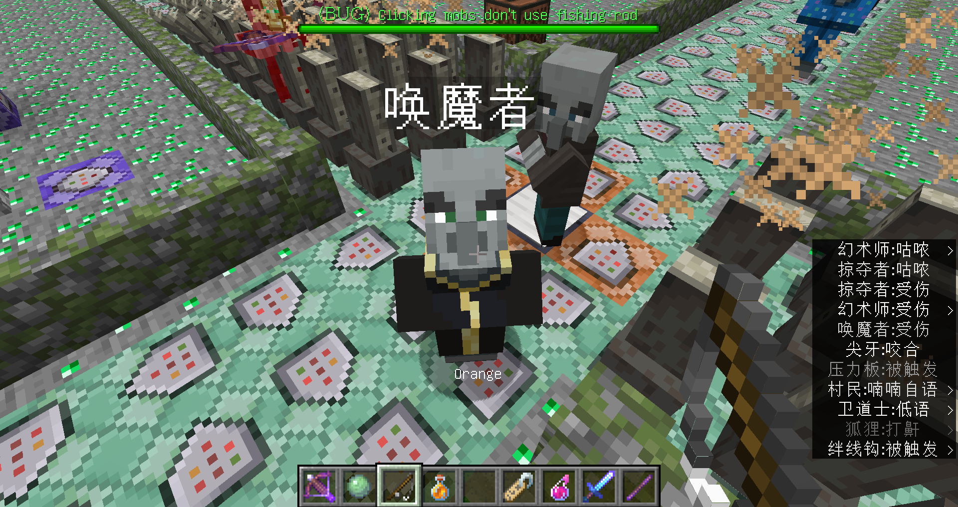When your reticle facing a mob and try to use fishing rod or throw trident.