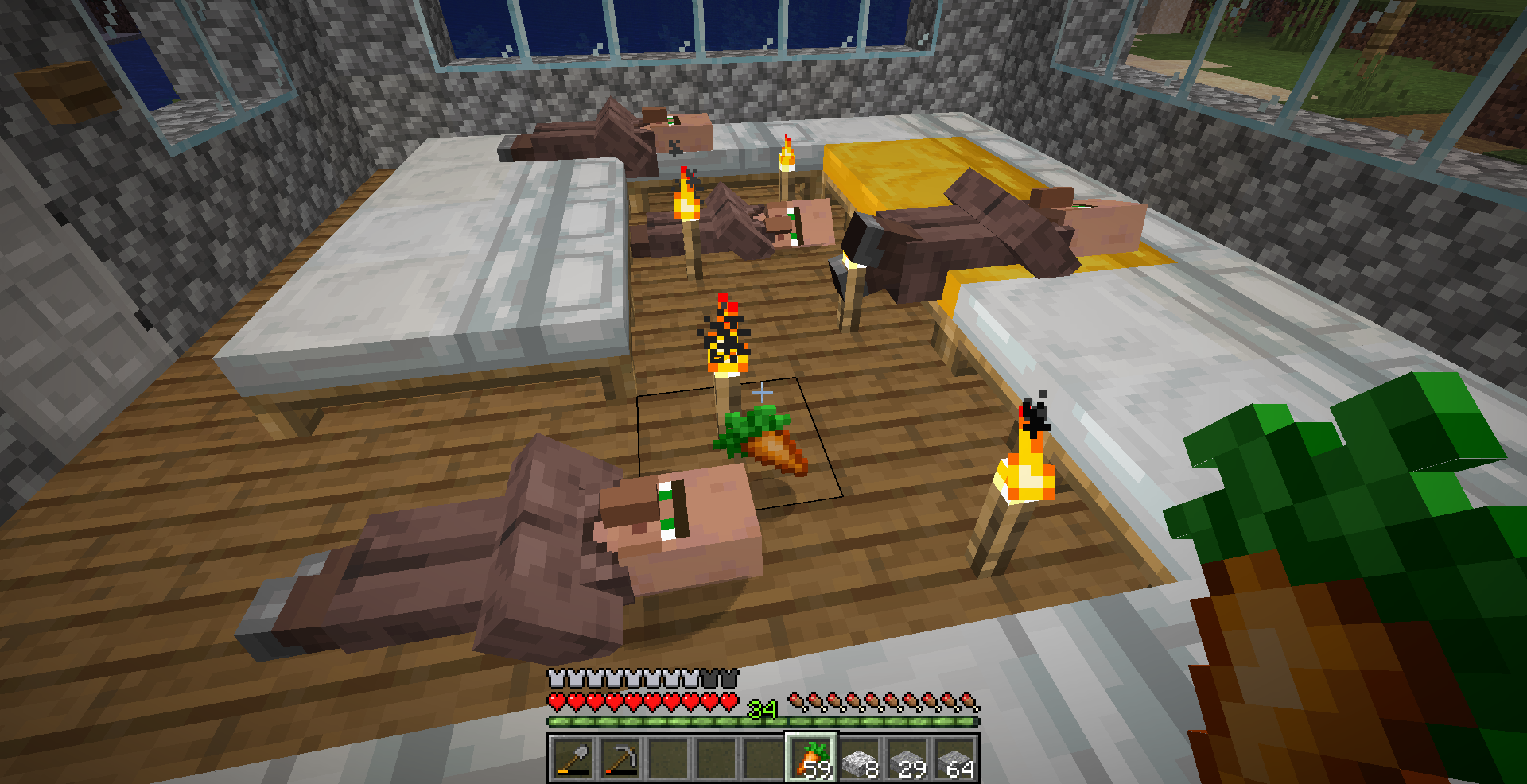 When I threw some carrots at a sleeping Villager, they all started sliding out of their beds after the carrots. Then they would sorta slide back to their beds.