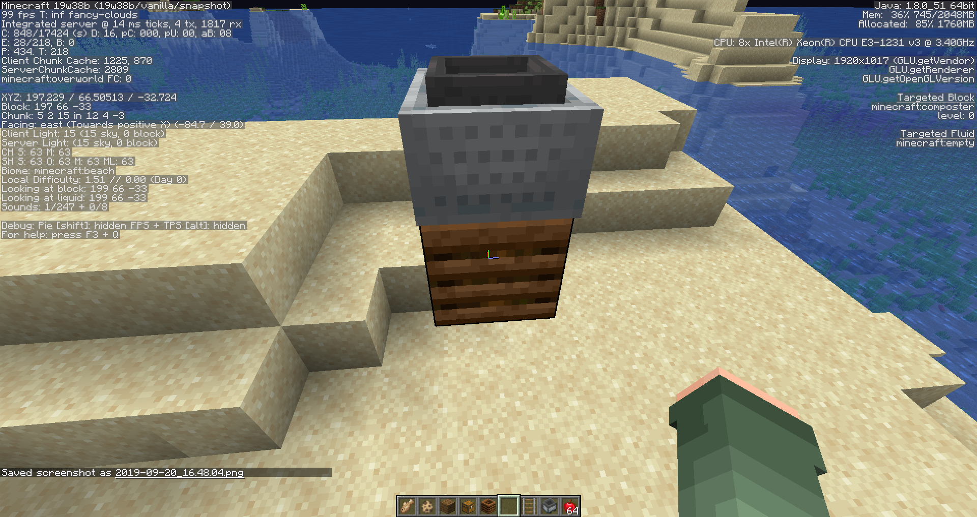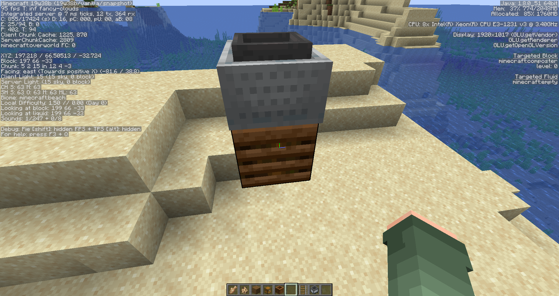 The minecart empties its items into the composter, which raises the fill level until it composts.