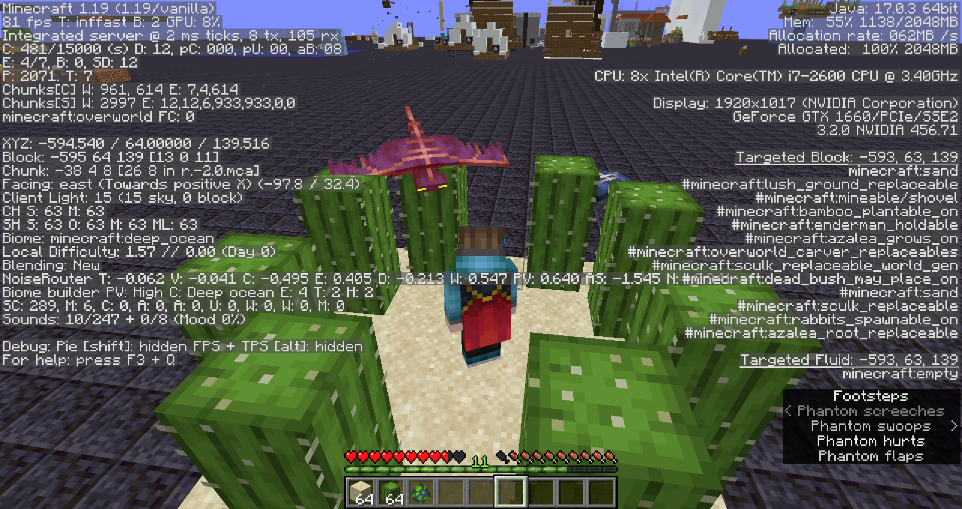 Phantoms do not avoid damage sources, such as lava, cacti, or even campfires, when swooping down towards a player.