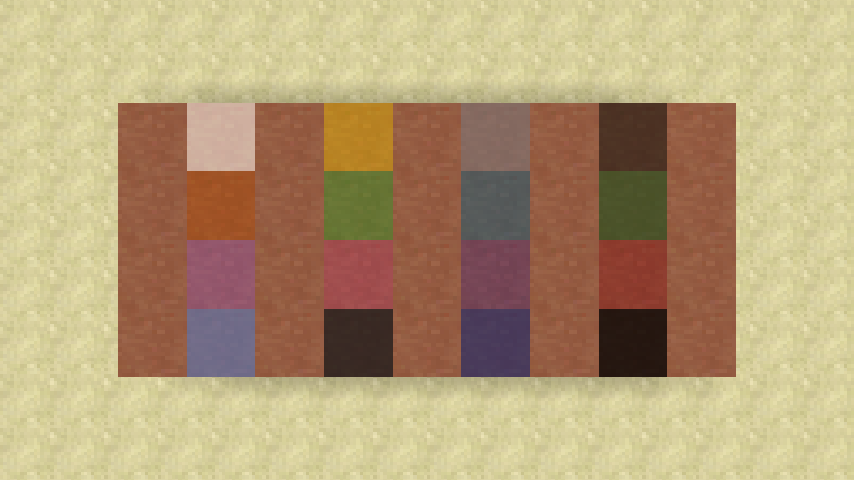 The texture of colored terracotta is not updated along with normal terracotta. This can be a problem when building with terracotta or exploring a badlands biome.