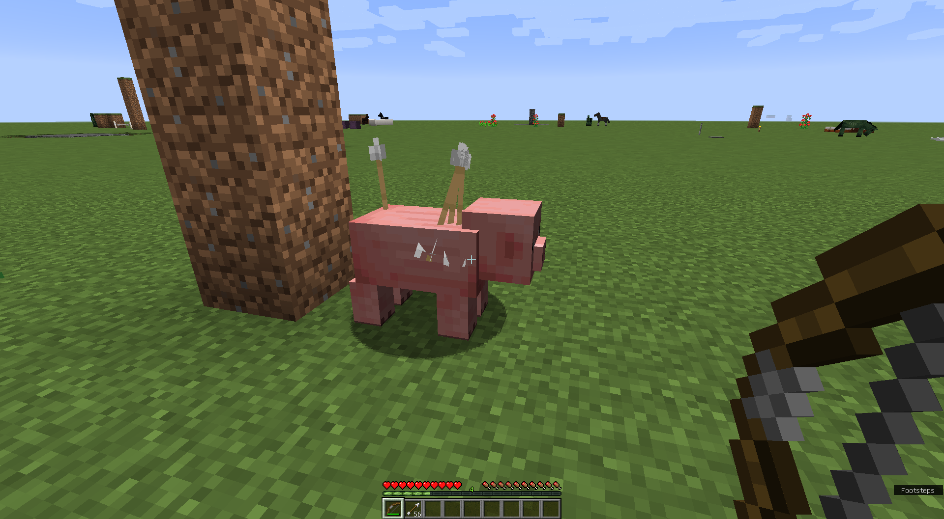 When shooting an arrow on top of a player in Creative mode, a closed shulker, a breeze, or an invincible mob, the arrow glitches on top of the entity.