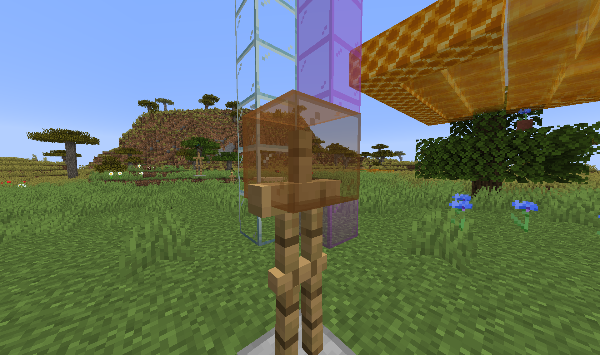 /summon minecraft:armor_stand ~ ~ ~ {ArmorItems:[{},{},{},{id:"minecraft:orange_stained_glass",Count:1}]}/summon minecraft:armor_stand ~ ~ ~ {ArmorItems:[{},{},{},{id:"minecraft:orange_stained_glass",Count:1}]}and look through the translucent parts, the following problems occur: