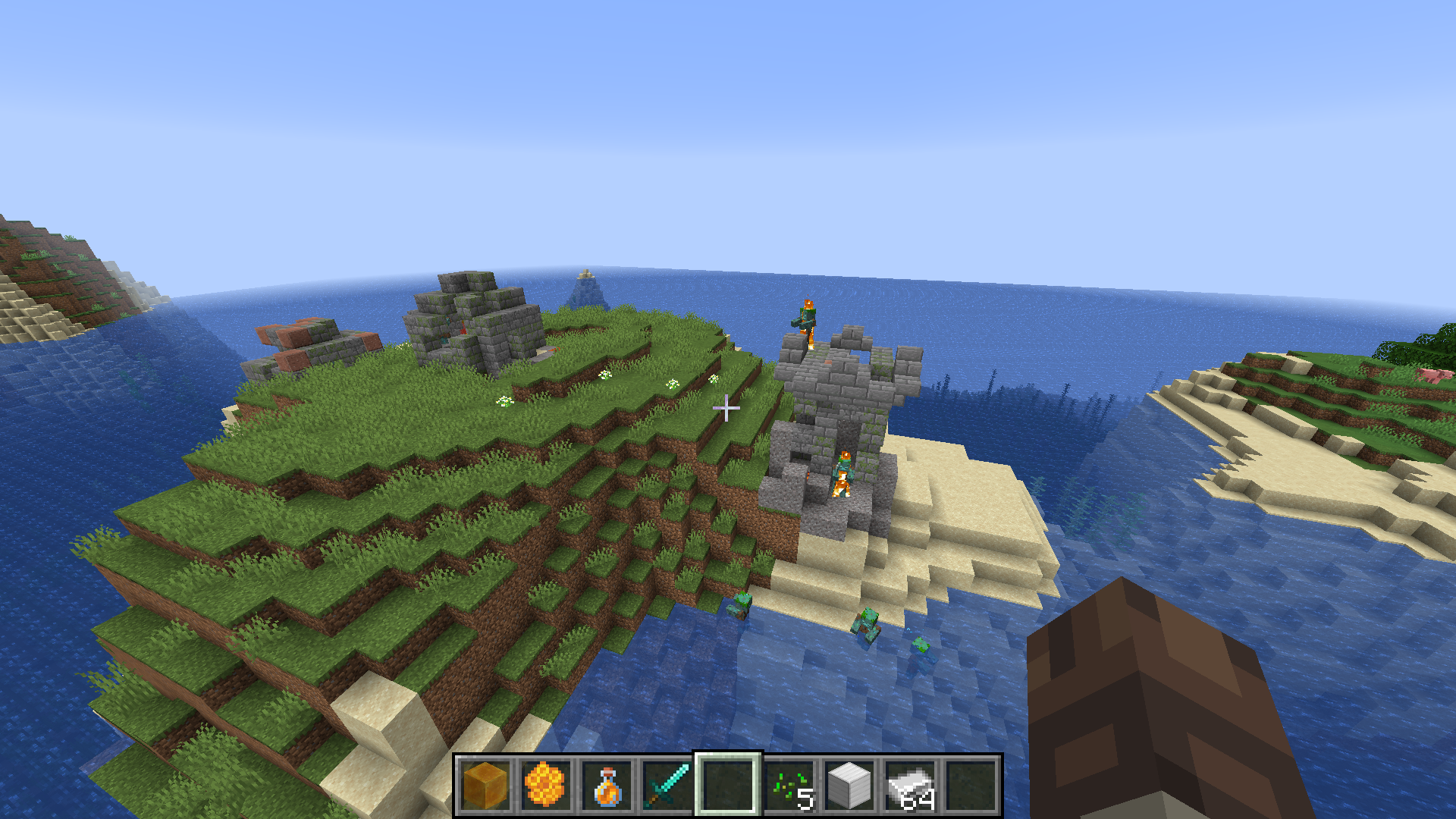 I loaded up a new world in the latest snapshot "19w41a" and I was looking for the new bee nest and I came across a structure. I thought it was a dungeon because I saw zombie looking guys. I was wrong, when the chunks started loading in I realized that it was a underwater ruin. I'm pretty sure there not supposed to generate on land. Kinda strange, because the water zombies were there too.