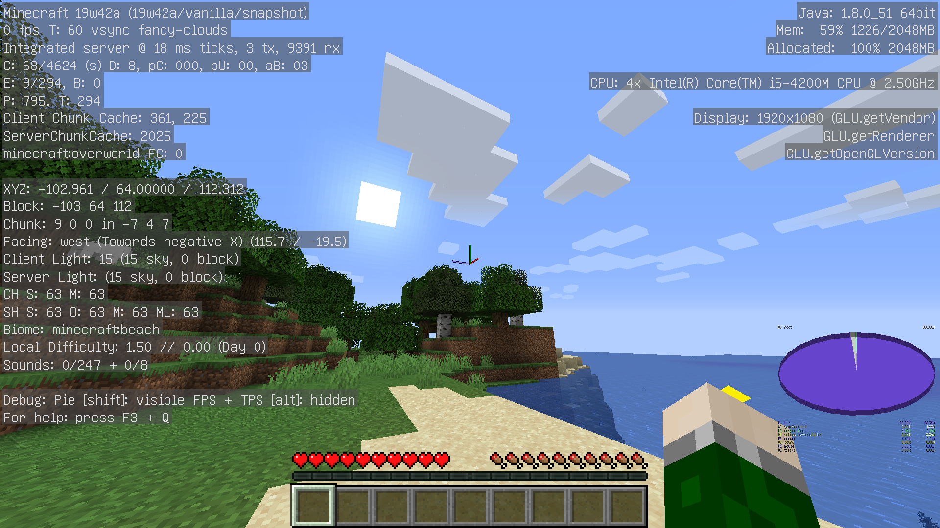 Result: While 1.14.4 after some lagging is playable (though not enjoyable, 'cause still too laggy), the 19w42a snapshot is a slow dia show and not playable at all.