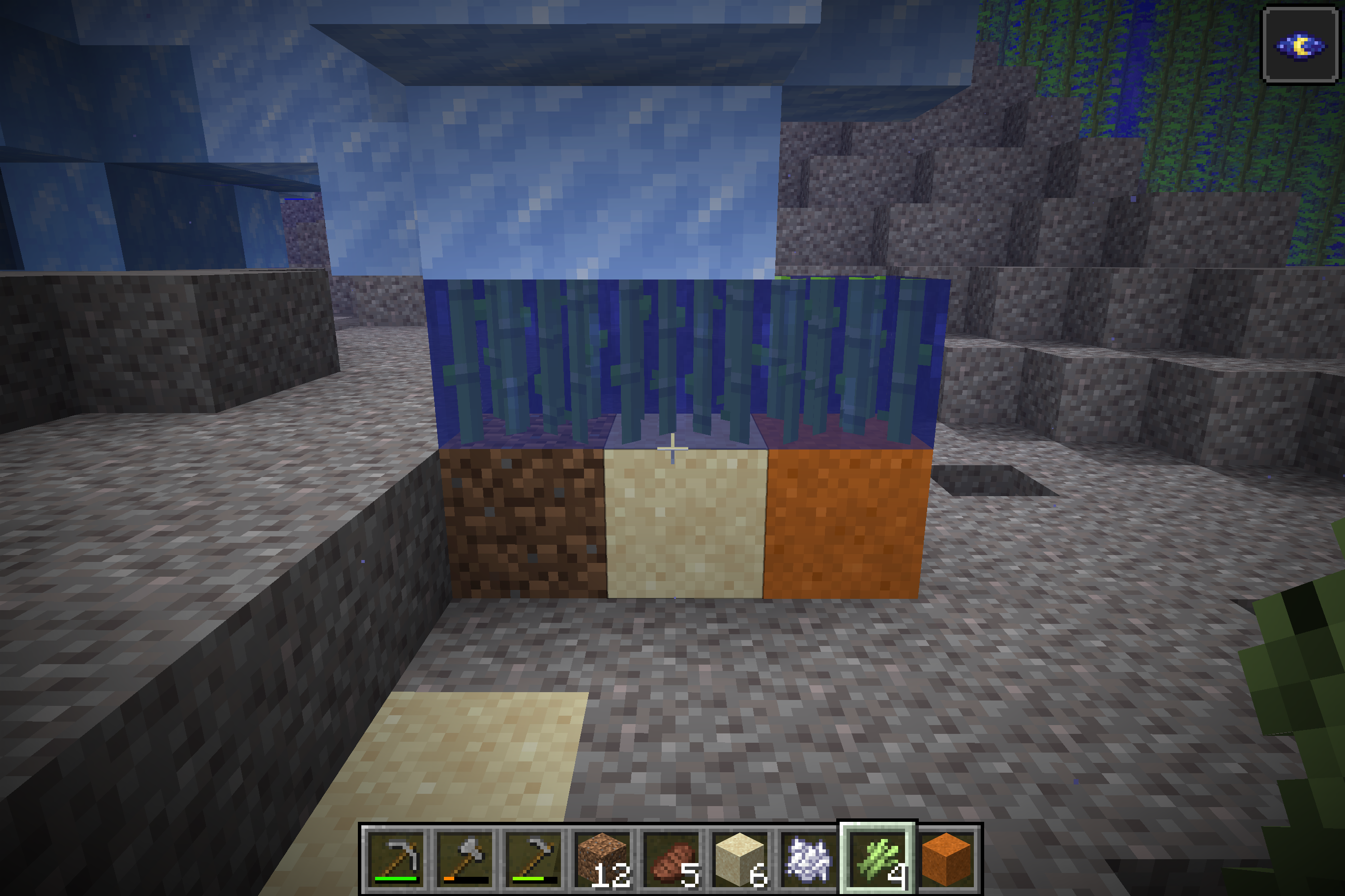 You can place sugar cane underwater on sand, red sand, and dirt. The sugar cane will not grow unless it is exposed to an air block, as shown in the picture. Don't think this is supposed to happen.