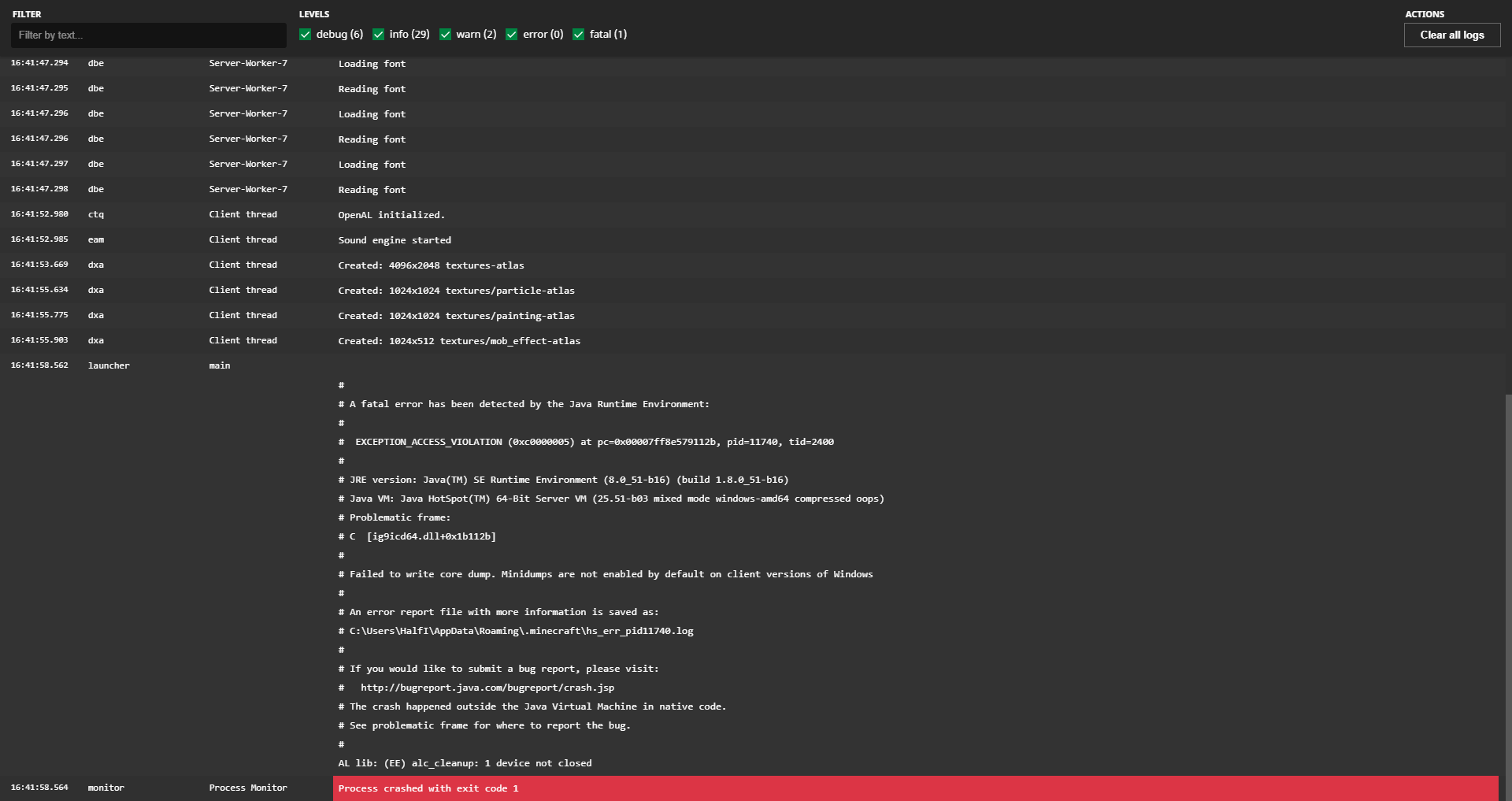 [minecraft/launcher_log.txt|http://hopper.minecraft.net/help/guides/minecraft-logs/].This issue has been temporarily closed as Awaiting Response. Once the requested information has been delivered, the report will be reopened automatically.